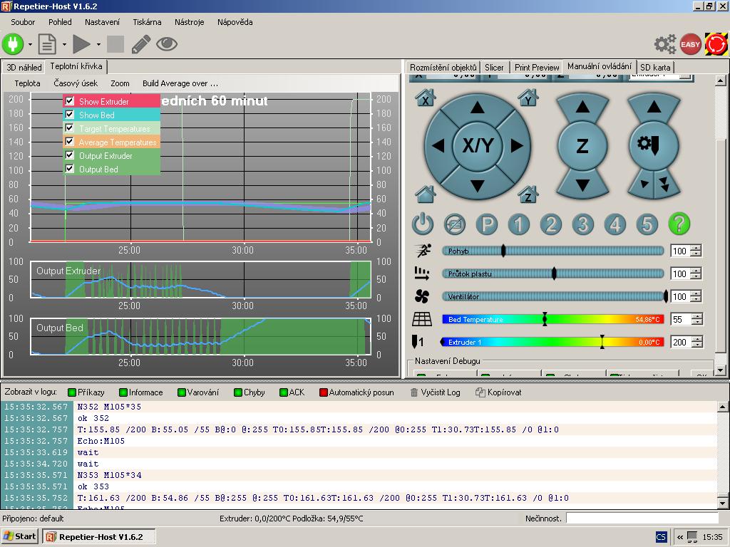 Hot bed ukazuje spolehlive a da se ovladat jak z displeje, tak z programu.