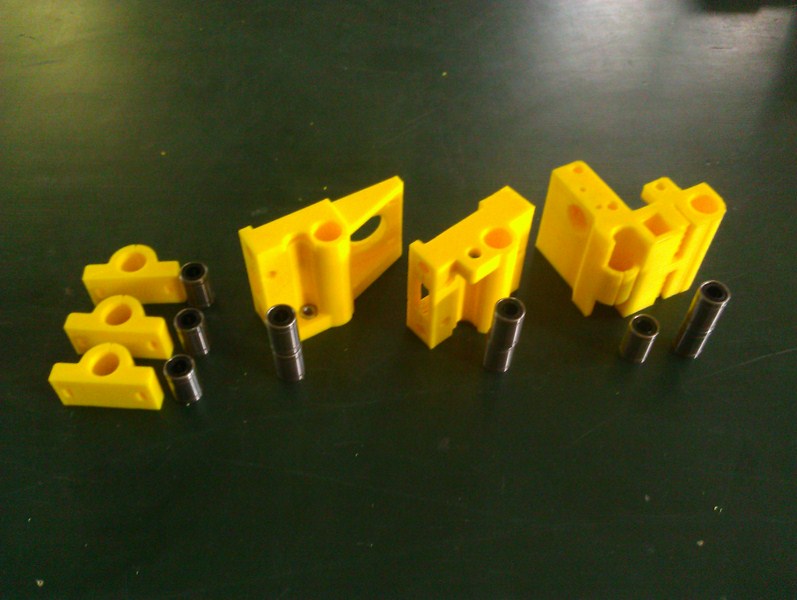 Po stržení otřepů a hran dílů, vložte ložiska LM8UU do otvorů v říslušných dílech. Pokud