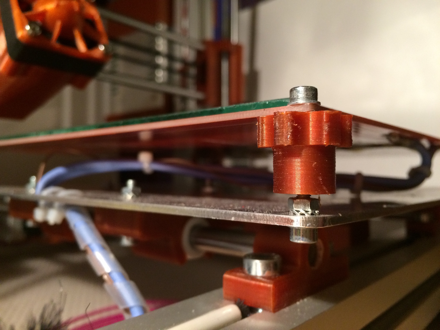 Není někde nákres, jak je přesně udelané usazení hotbedu na podložce ? Jak vypadají 4 vyrovnávací šrouby (pro finální dorovnání hotbedu)?