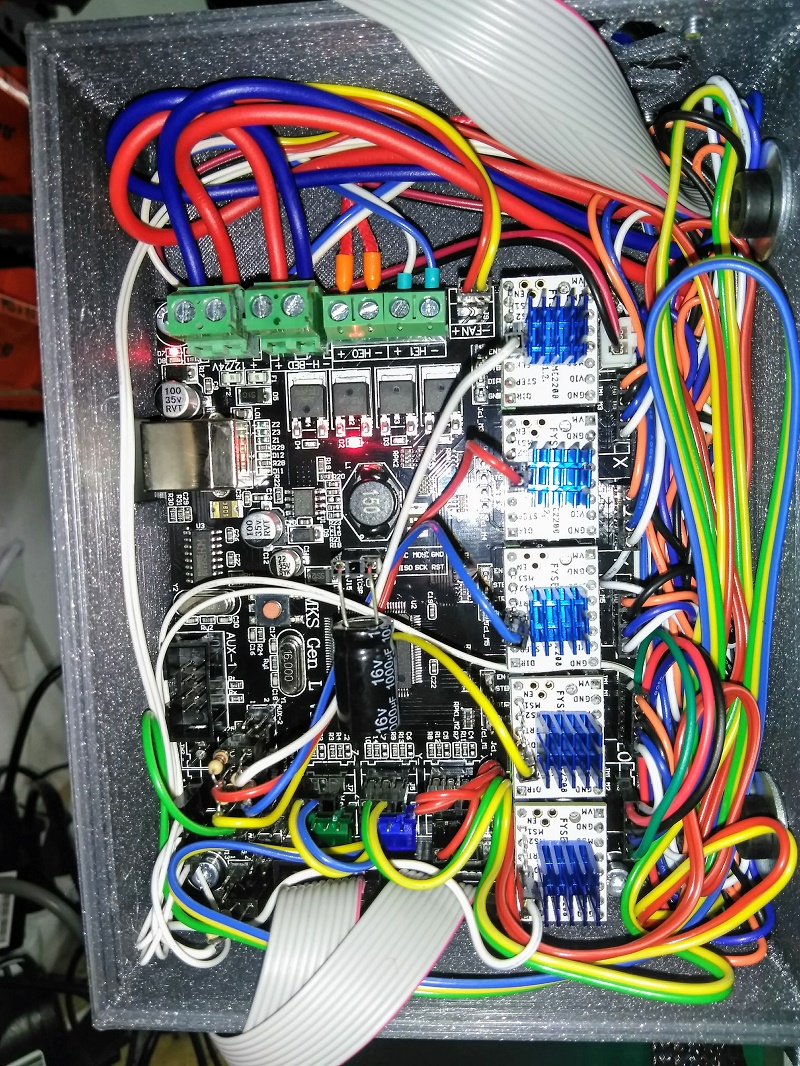 Tedy využil jsem indukční sondy a nezávislého řízení motorů Z, kdy poslední Marlin umí pomocí gcodu G34 funkci "Z_STEPPER_AUTO_ALIGN", kdy "osahá" ve 2 nadefinovaných bodech stolek a podle jeho roviny srovná motory Z, tedy odpadají 2 endstopy na Z.