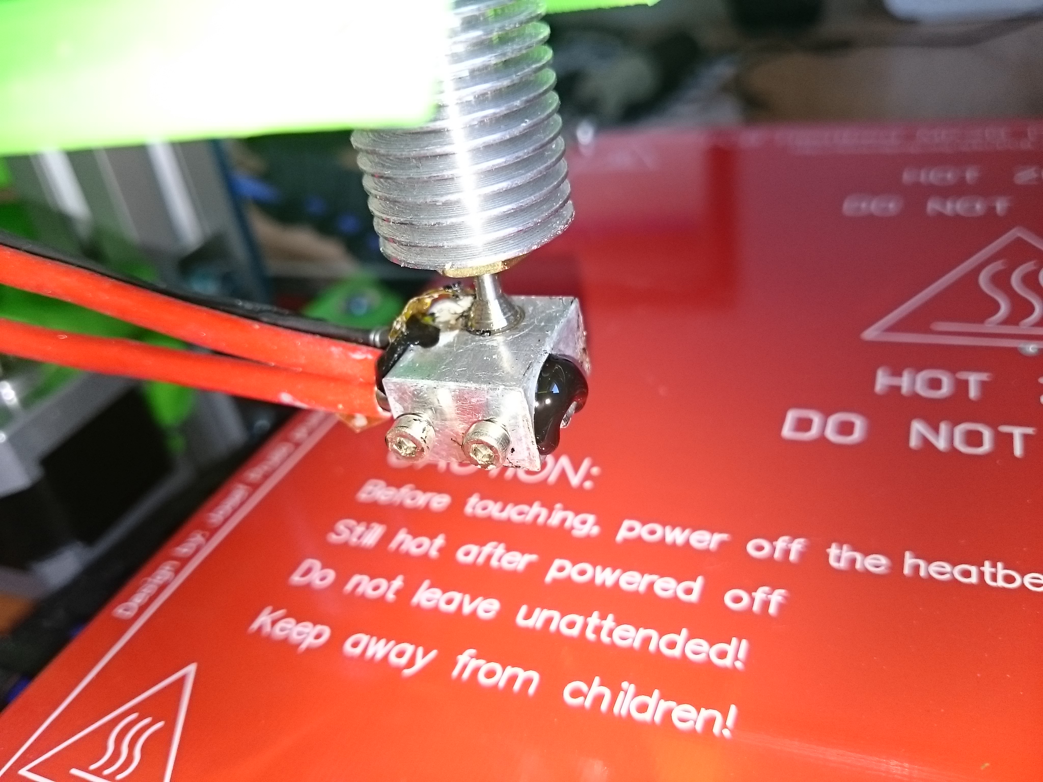 Takže jsem to rozebral, o kus zašrouboval a teď mám po utažení trysky mezi šestihranem a heatblokem spolehlivou viditelnou vůli - a nikde nic neteče.