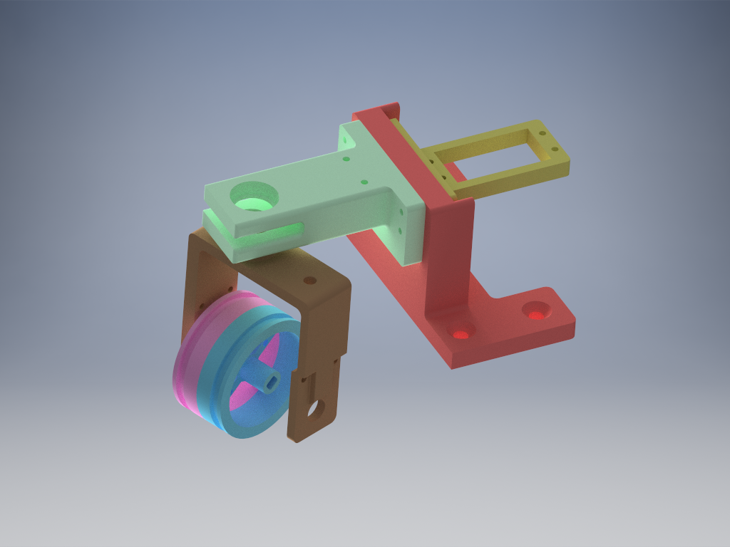 Byl v něm použit původní DC motor ze základní verze autíčka. Tato verze se neosvědčila kvůli tomu, že bylo kolo umístěné přímo na hřídeli motoru. Problém nebyl v přesnosti, protože osa byla na druhé straně uložena v kuličkovém ložisku, ale kolo se pro moje účely točilo příliš rychle a nemělo dostatek točivého momentu. Dalším problémem bylo zbytečně veliké uchycení na vozítko a na opak příliš vetchý rám s kolem a motorem. Nevhodné byly taktéž ozubená kola přenášející otáčení serva.