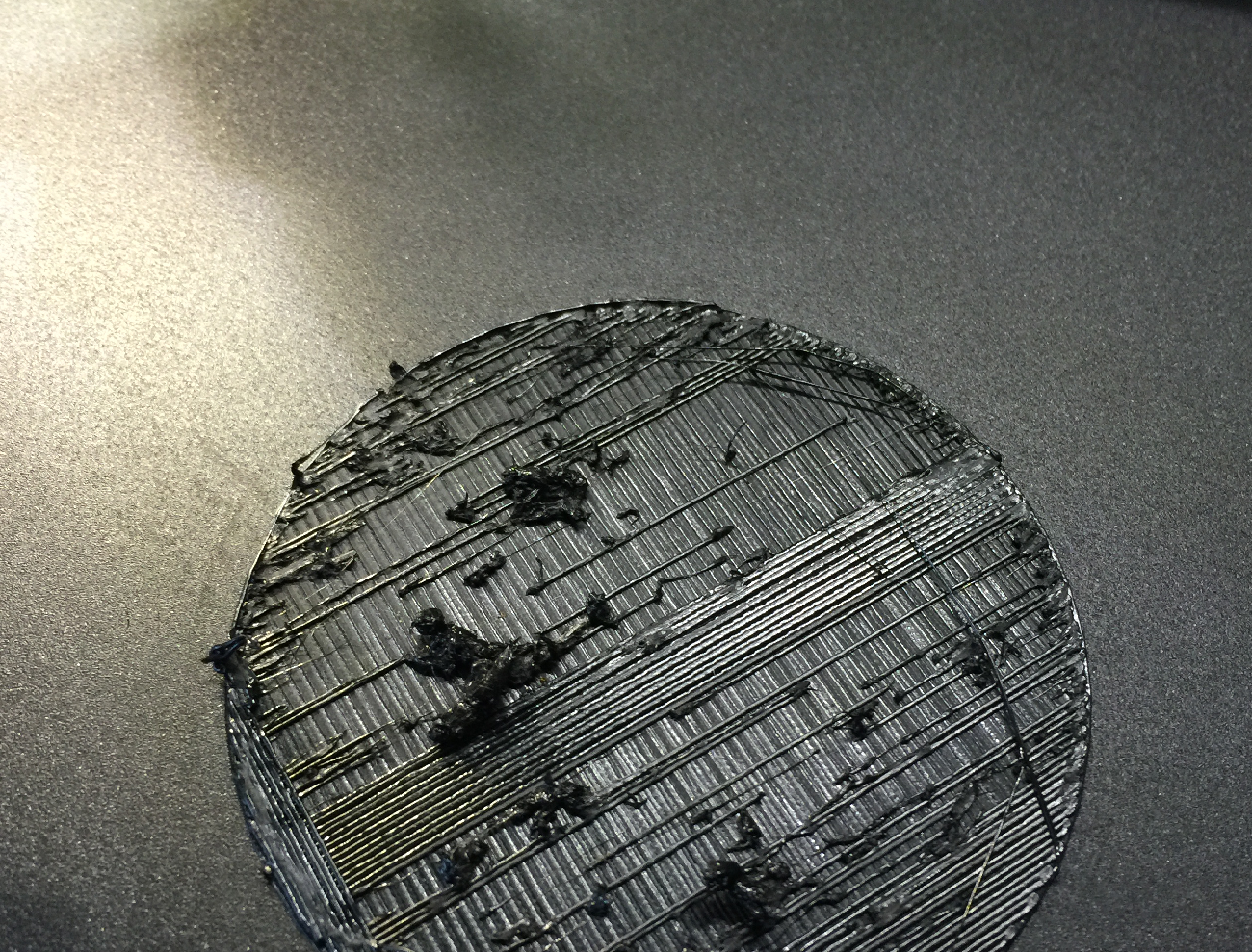 prva vrstva bola pomaly, je ok. druha vrstva je tlacena na plnej rychlosti. v strede vidno suvisly kus, tam som znizil rychlost.