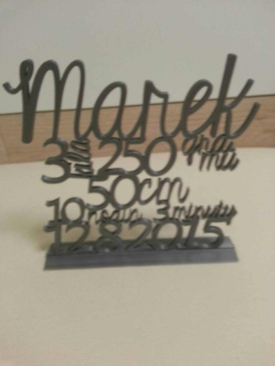 v nějakym 2d vektorovym programu napiš nápisy, pak to ulož např. jako dxf a otevřií v nějakym 3d programu, protáhni, dodělej stojánek, ulož jako STL a už se jede. (2D např. Corel Draw, případně zdarma LibreOffice Draw)