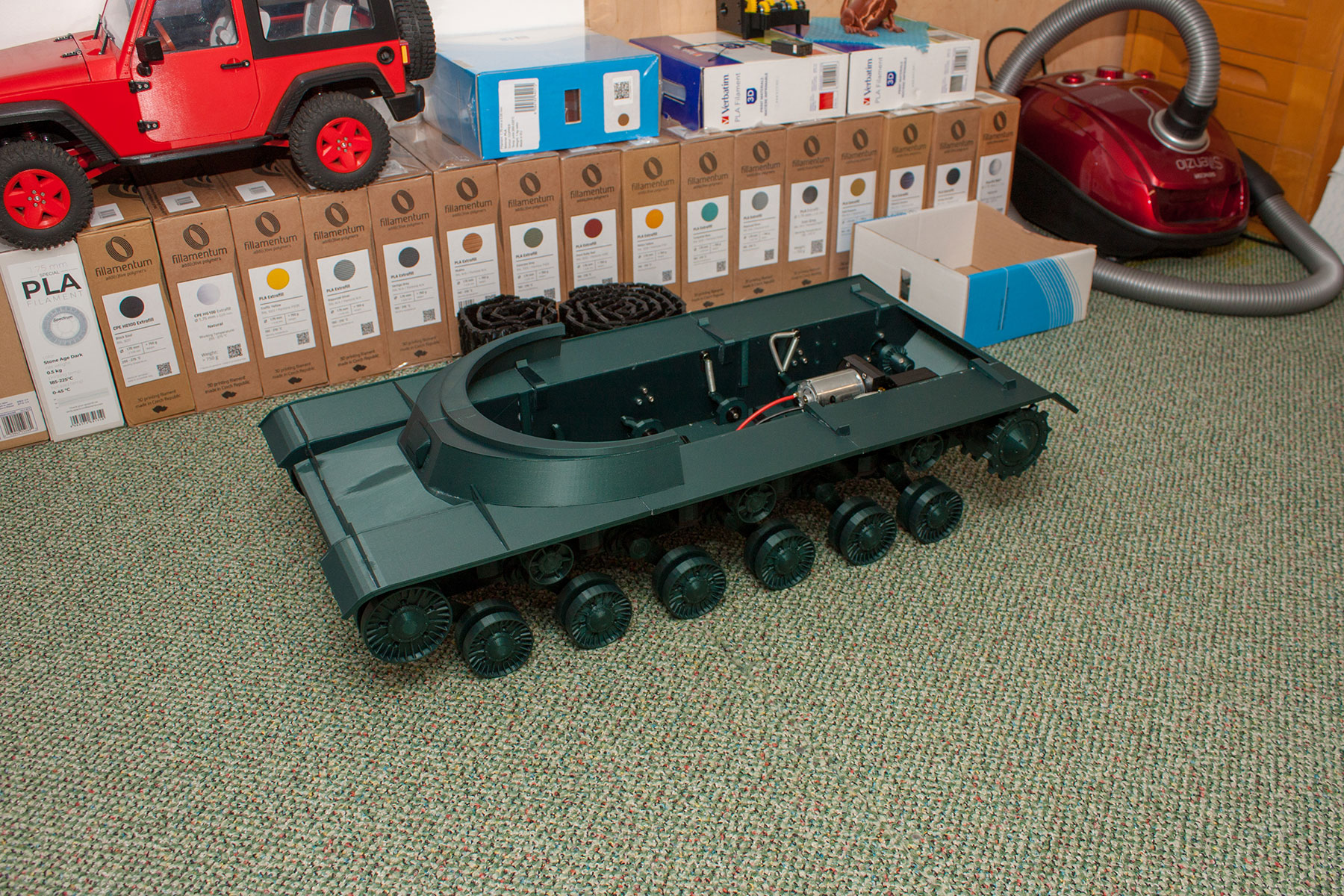 Všechna kola už jsou vytištěna a osazena, chybí půlka pravého pásu.
