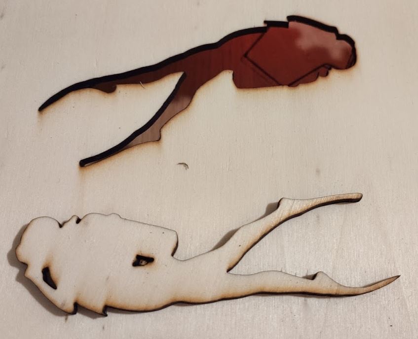 4 mm topolová překližka. 150mm/s, 100% výkonu, jeden průjezd.