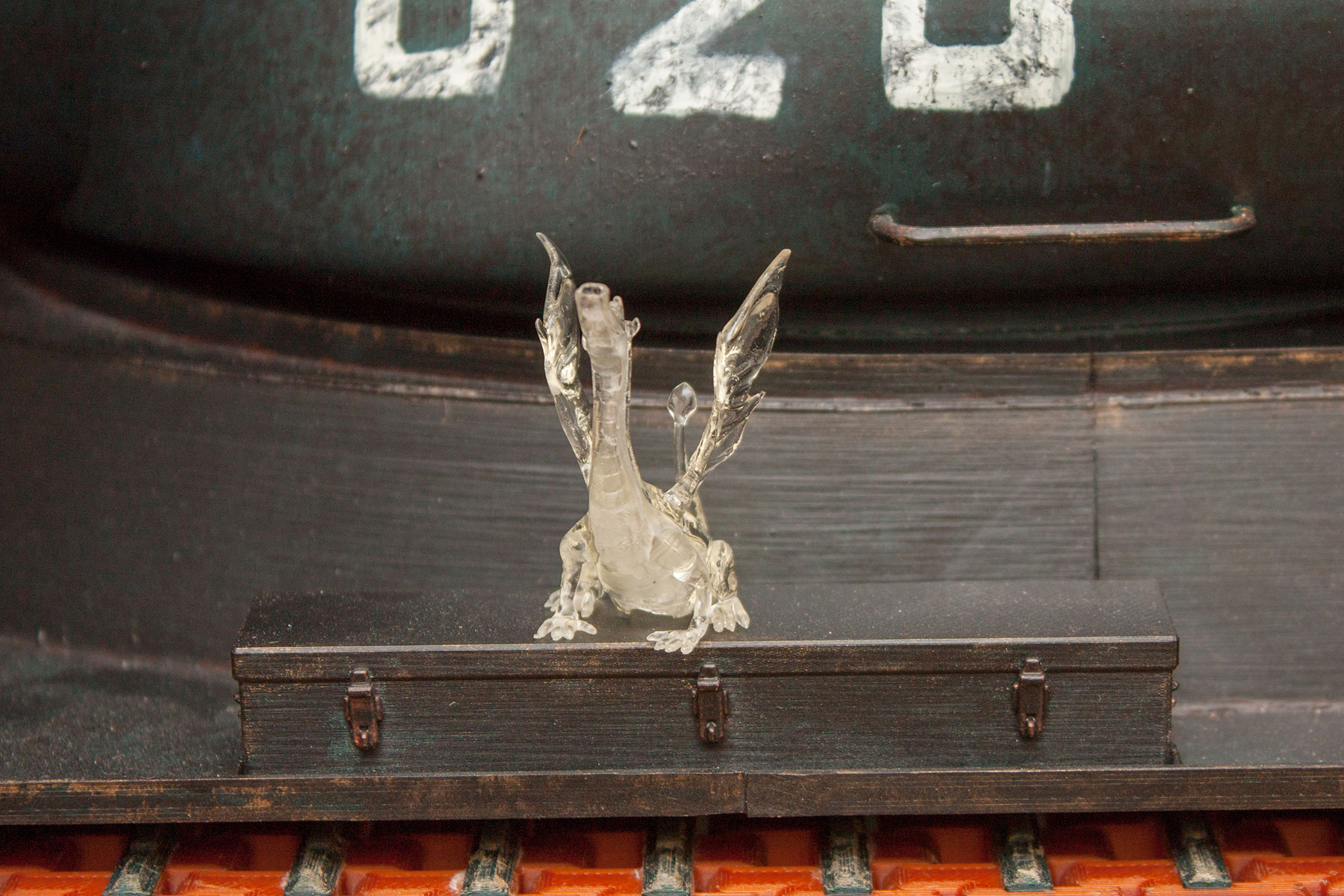 Výsledek zde, vlevo původní, vpravo natřený a vytvrzený lampou, výška dráčka ja 38 mm: