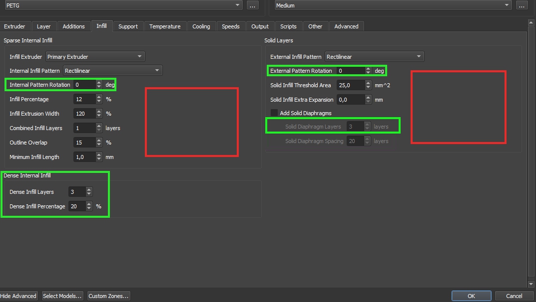 Rotací vzoru výplně nahradili možnost zadat jednotlivé úhly otočení vzoru pro jednotlivé vrstvy.