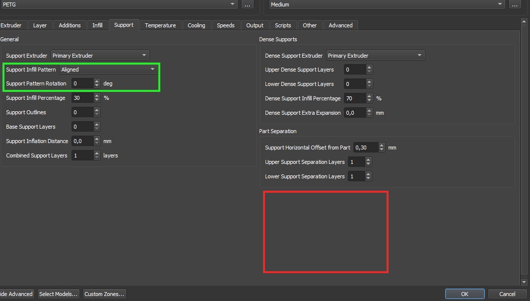 Zmizel posuvník hustoty výplně a zatržítka include raft a generate support.