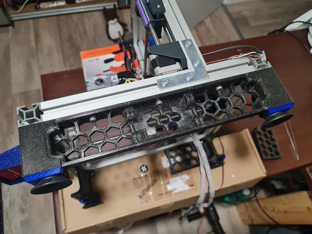 Tak, nozky namontovane... je to dost stabilni, zbavil jsem se i puvodnich vrchnich zpevnovacich dilu z Rebela. Chtel bych tam dat takova ta Lka pro spojovani alu ramu, nicmene objednal jsem 4 tyhle Lka pro ram 3030 a jedna strana na vsech kouscich bude muset potkat nejakej seriozni pilnik... ceske shopy selling cinsky smejd, co nema poradne QA testovani. Kazdopadne ty nohy to drzi solidne pohromade. Foto nize...