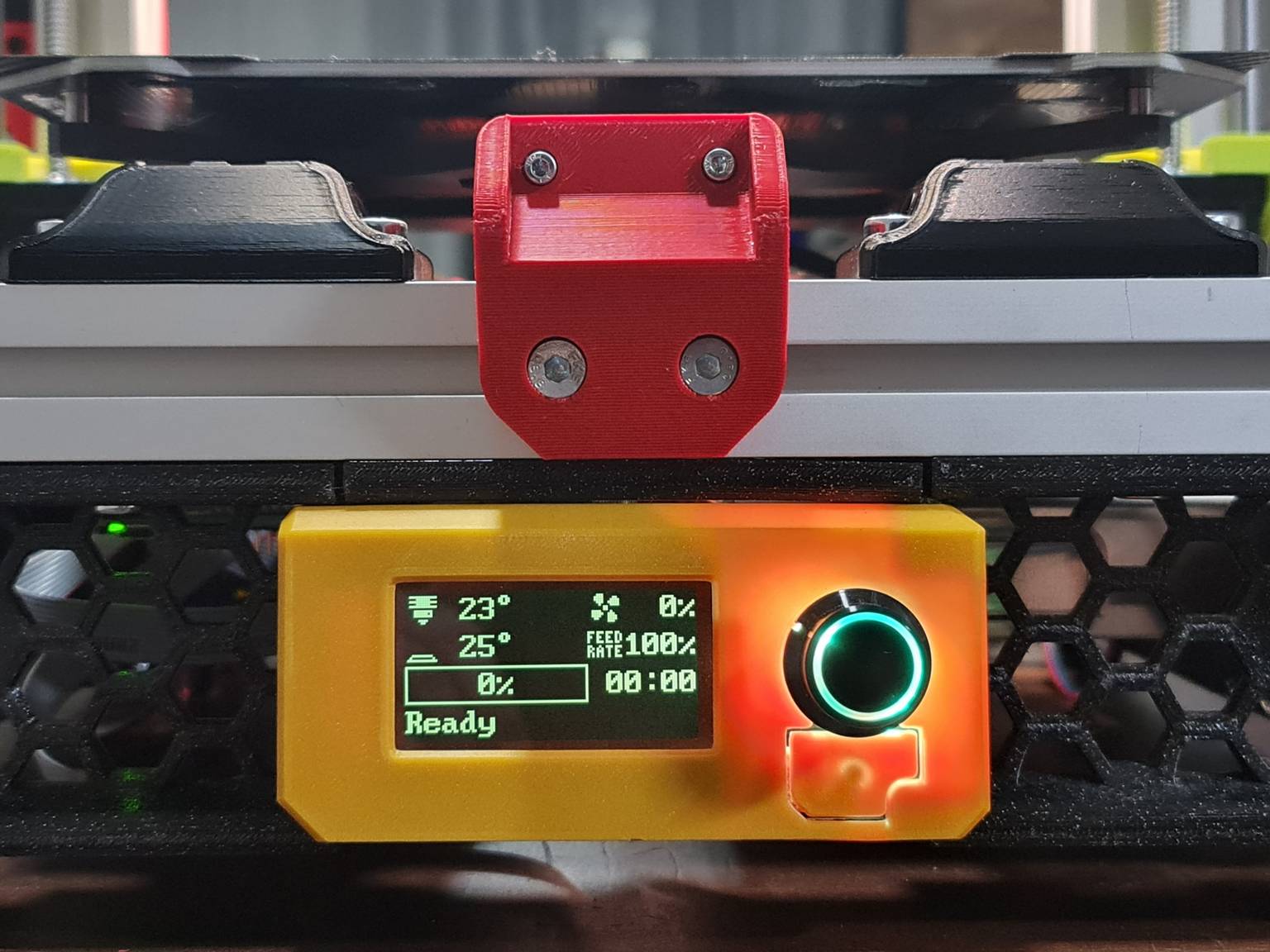 Tak tu zase mame jeden az dva rychle updaty... kryt na LCD 12864 mini jsem nasel na printables, takze jsem na nej jen dodelal jednoduchy uchyt. Bylo nutne upravit uchyt pro napinak, takze ten je taky novej.