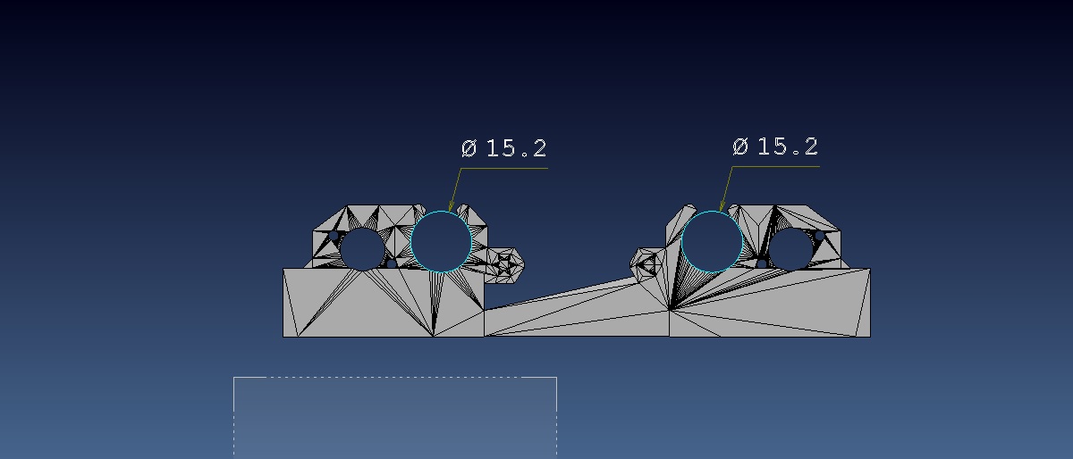 Spodní část je uštíplá štípačkami, horní je čistý lom. Proto je směrodatná pouze ta horní část. Je tam výborně vidět vyboulení vrstev do stran a nespojení perimetrů. Když jsem toto odstranil, a dosáhl spojitých linek, vnitřní otvory se mi zmenšily o 0,2 - 0,25 mm. Díly jsem kreslil pro sebe, abych je mohl rovnou použít, ale pak jsem je hodil sem, kdyby se někomu hodily také. Bohužel jsem to k nim nenapsal, to o těch rozměrech.