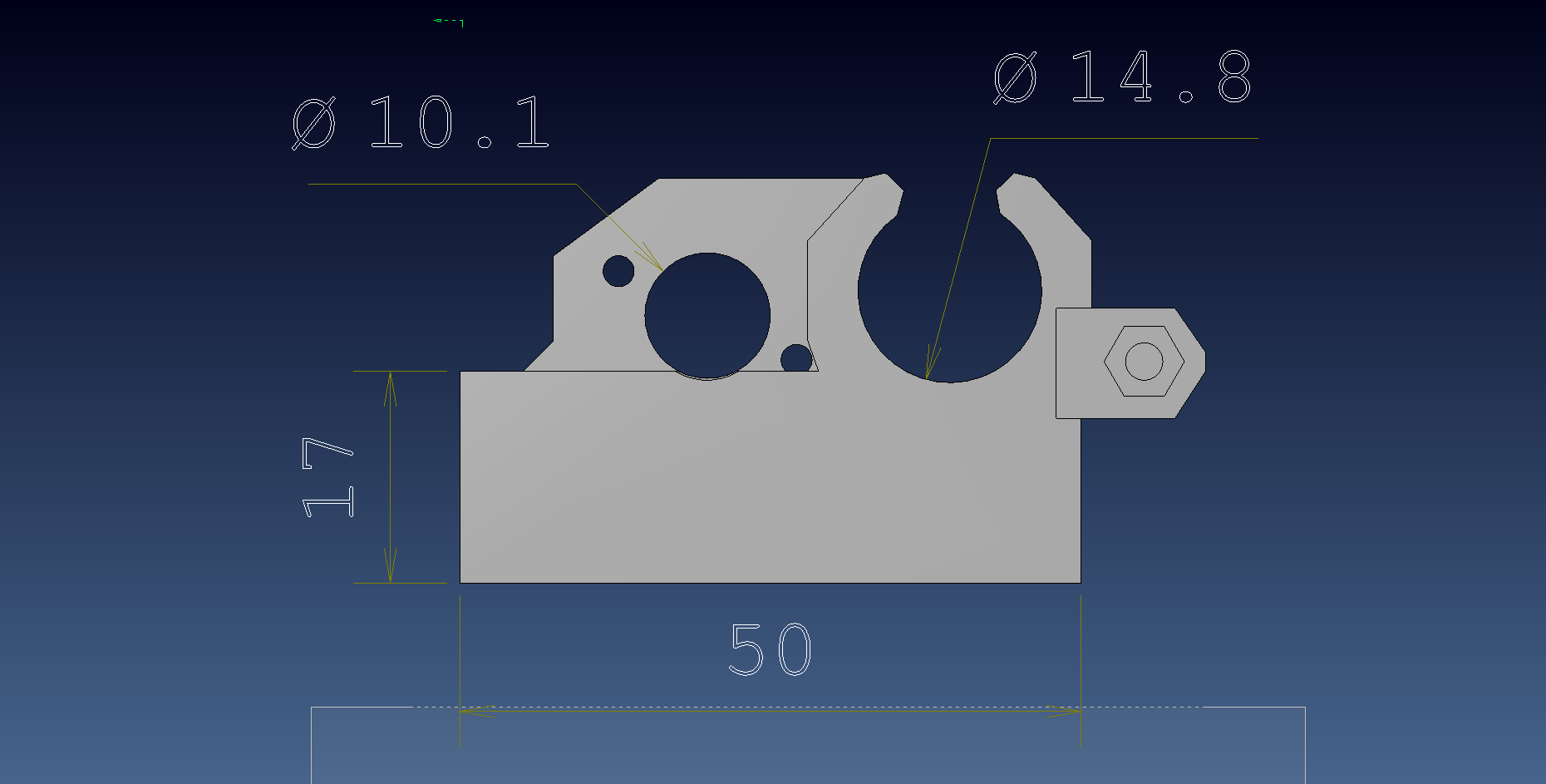 Zde jsem si dovolil udělat úpravu průměru pro ložiska na 14,8 mm a pro matici trapézu 10,1mm. Ostatní otvory jsem ponechal jak jsou a každý se je může protáhnout vrtákem dle své chuti.