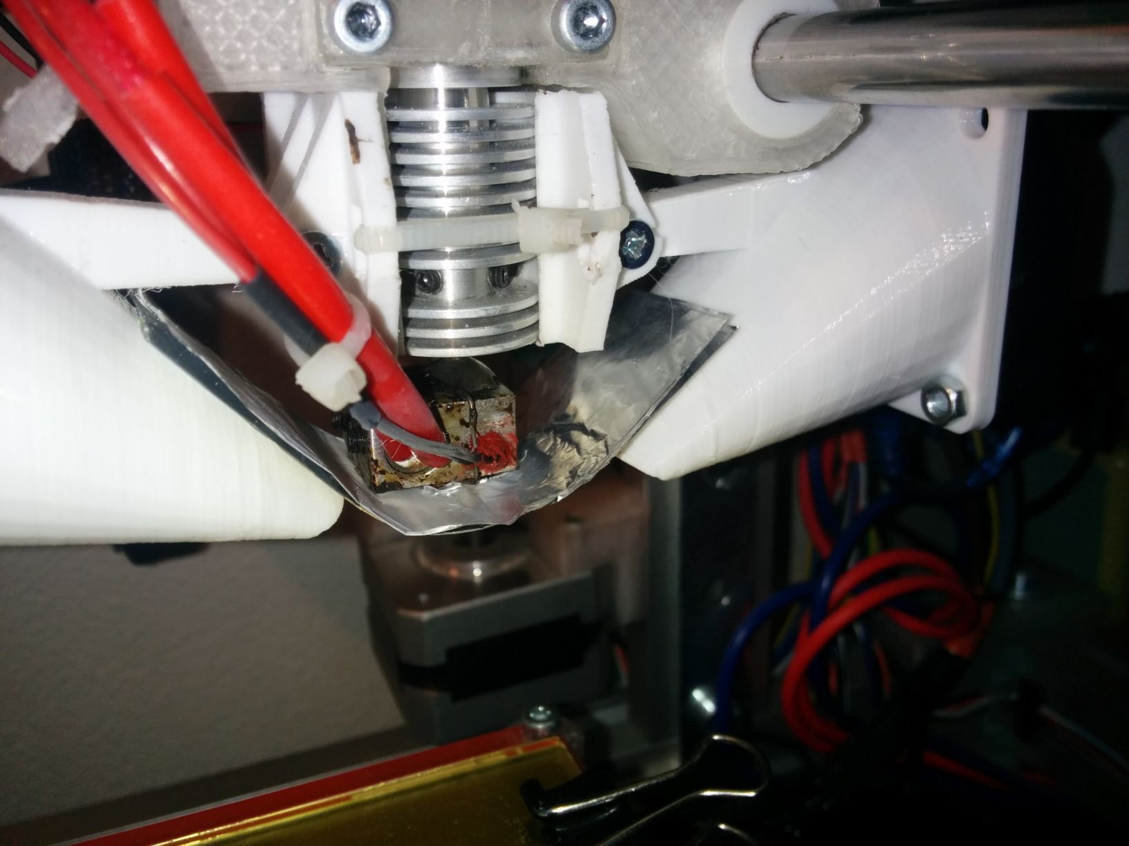 Já jsem včera omotal heatblock krepovou páskou z Tesca... Cca hodinu to smrdělo, ale pak to přestalo a funguje to taky dobře. Spodek stolku jsem odizoloval korkem a vysokoteplotním silikonem na motory, ale pořád mi klesá teplota.