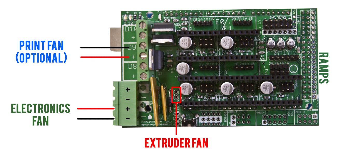 [quote="medapeta"]Větrák hotendu přímo na 12V, na RAMPS je možné osadit konektor poblíž kondenzátoru na pravé straně nebo to nacpat přímo na zdroj.