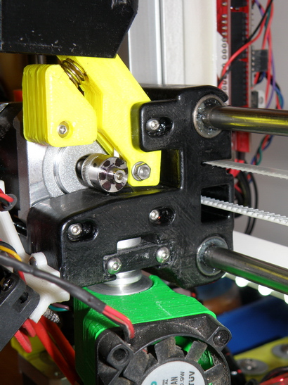 Kromě úpravy uložení ložisek jsem musel prodloužit díry pro uchycení motoru a zvedl jeho uložení o cca 3mm, protože mám zubatici o vnějším průměru 12mm a drážka byla mimo osu vstupu do HE. Stejně tak výstupek na vstupu je o něco nižší. Teď jde tedy na pojezd bez problémů osadit motor se zubaticí o průměru až 12mm při zachování přímé cesty filamentu.