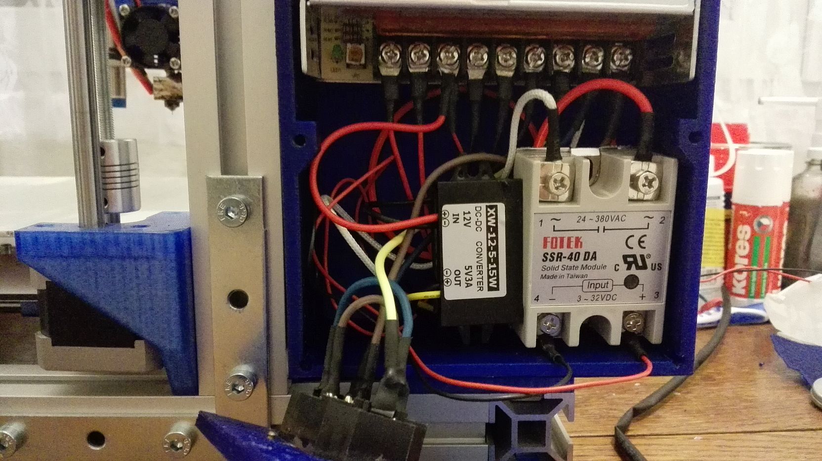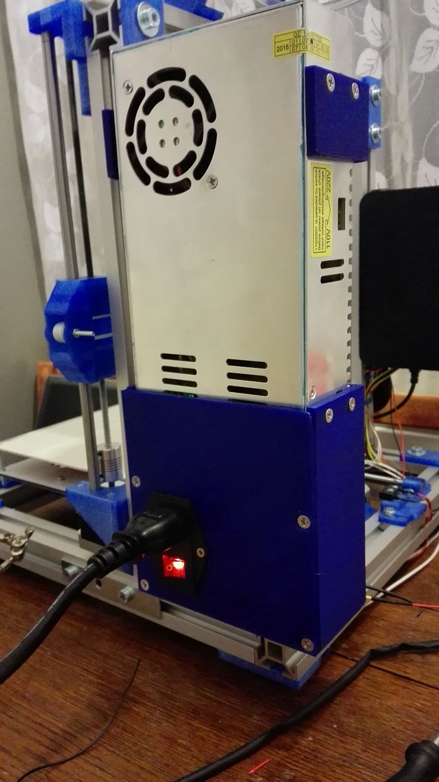 jelikoz jsem se pri stavbe meho rebela tak uplne nedrzel navodu, tak pouzivam trochu jiny zdroj (360W viz odkaz, totalne zbytecne moc silny, napaji jen 40W hotend a elektoriniku :-)) a potreboval jsem pro nej drzak a zaroven prostor kam bych schoval SSR rele pro ovladani moji 220V podlozky. Tak jsem se pokusil si navrhnout svuj, je predimenzovany a opravdu velky, ale snazi jsem se alespon trochu priblizit designu rebela jako takoveho a zaroven aby dily byly co nejednodussi na tisk. Davam to sem, kdyby se to nekomu hodilo.