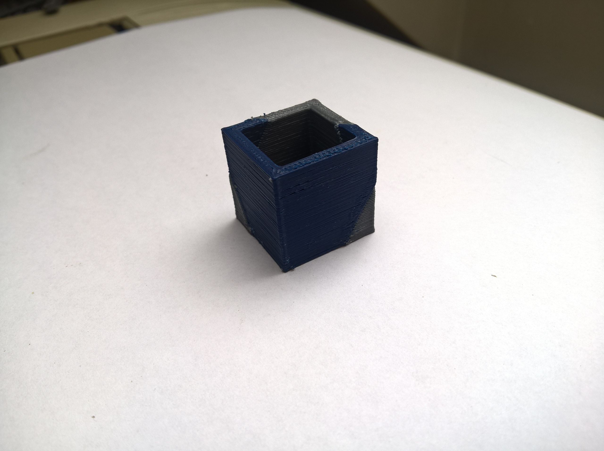Ty přetoky, co jsou vidět na obr, jsou způsobeny tím, že jsem musel při přepnutí trysky dát aby se filament posunul o 1mm (už jsem to přenastavil na 0,5mm), jelikož když daná tryska netiskne, filament má snahu o kousíček povylézt a proto to vynechávalo viz obr