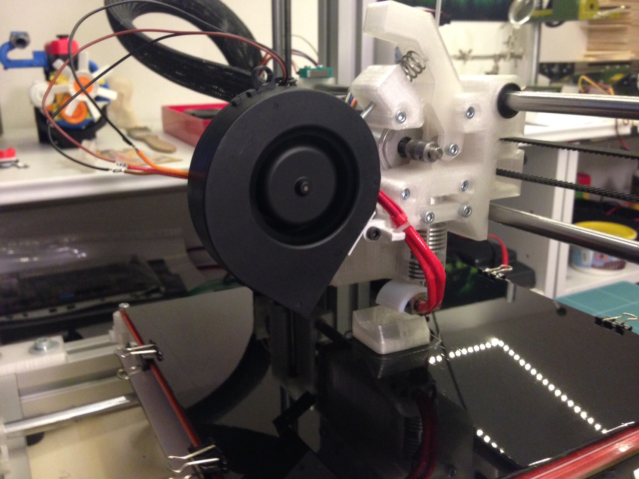 Dovolil som si upraviť držiak zadného ventilátoru na 4 cm ventilátor a zároveň ho spraviť tak, aby sa dal upnúť bez lepenia s jednou M4x10 skrutkou a maticou.