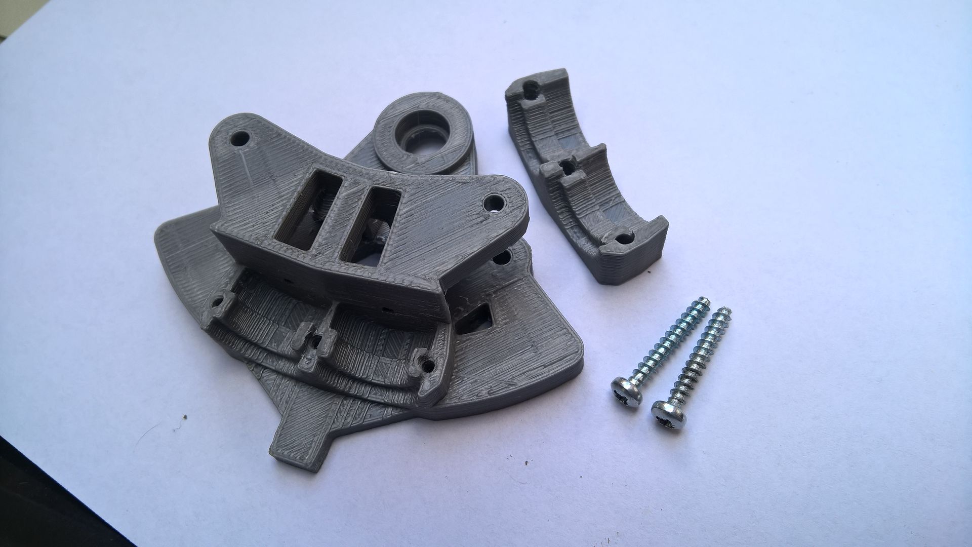 Co se týče možnosti použití serv, je to trochu horší. Snaha o navržení pro všechny velikosti serv selhala bohužel. Bude možno použít pouze serva s roztečí upevňovacích otvoru 36mm +-1mm a o šířce do 14 mm. Také každé servo má trochu jinak umístěnou osu otáčení (vzdálenost od bližšího upevňovacího otvoru) a kvůli tomu bude vícero variant posuvníků (po 0,5 mm).