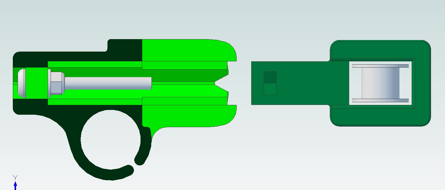 Takhle by to vypadalo pro normalni rebel II s kluznymi lozisky o vnitrnim prumeru 8mm a vnejsim 10mm. Je to pripravene i pro sroubky na jemne dostelovani delky tyci.