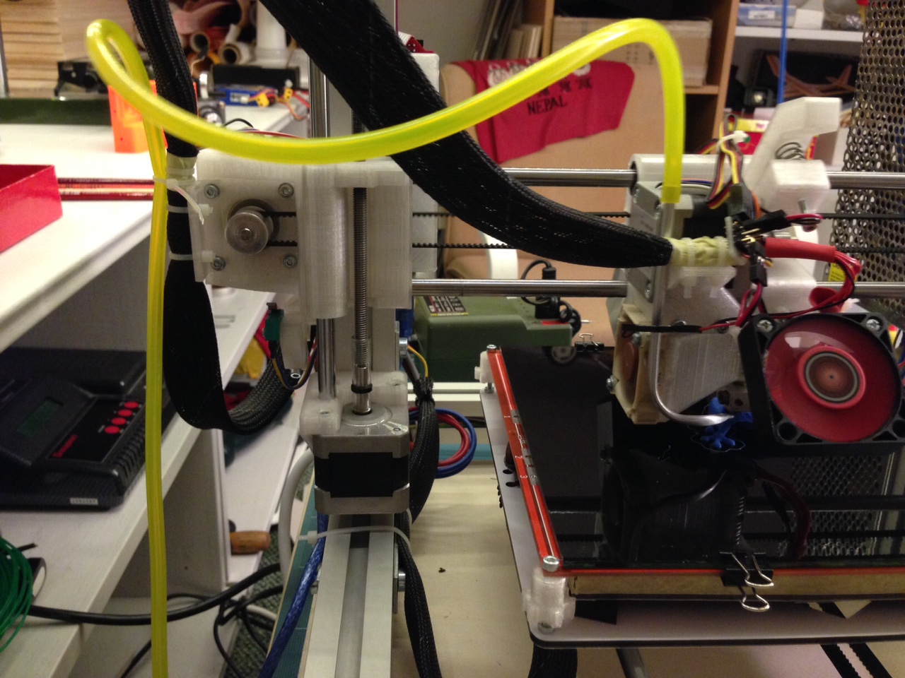 Máš tu tlačiareň pekne vytuningovanú. Všimol som si, že máš vzadu ešte jeden ventilátor. Môžeš sem hodiť ten zadný držiak? Upravoval si nejak aj pojazd extruderu?
