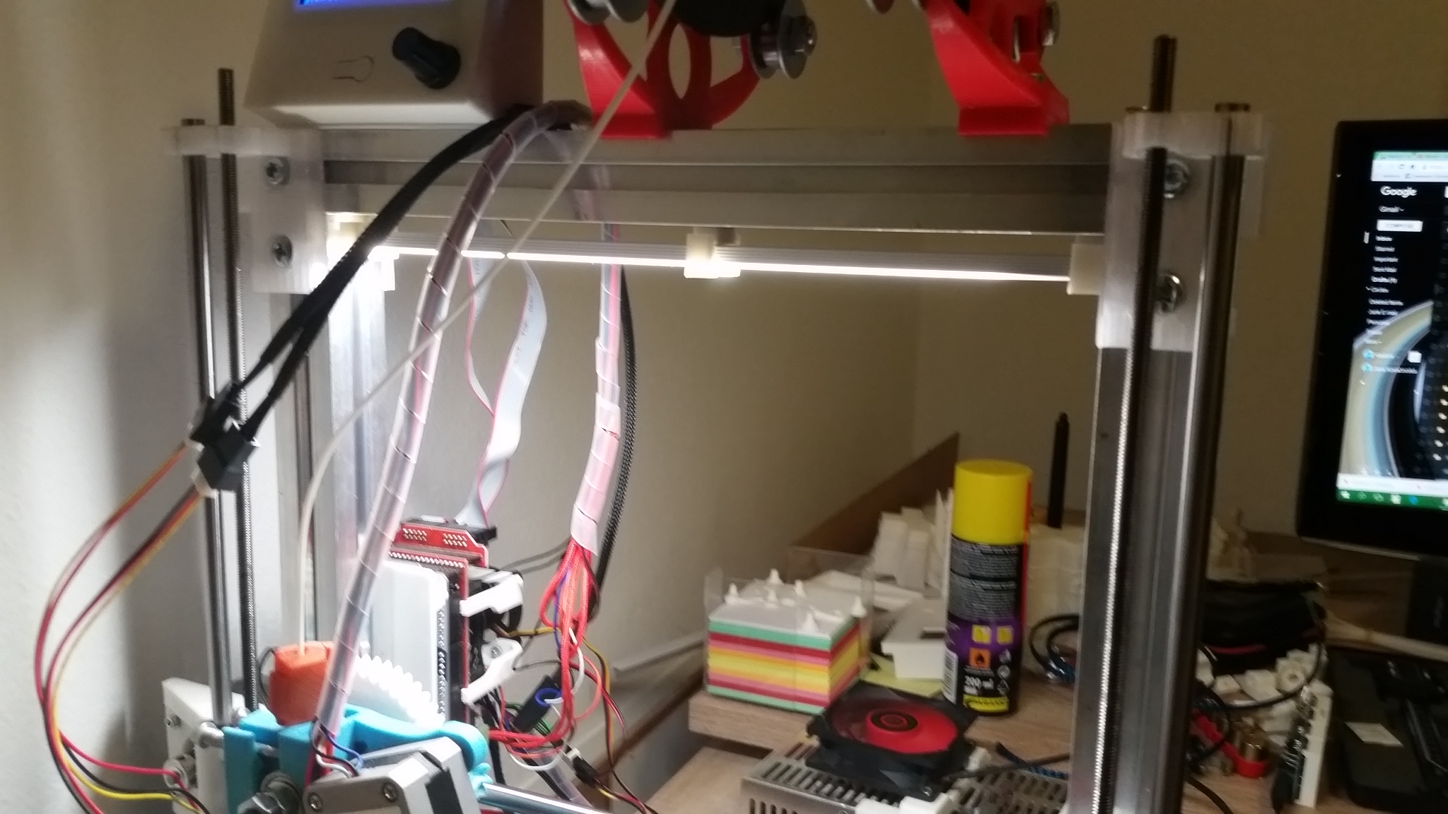 a este prikladam drziak filamentu ktory som stiahol na thingiverse a upravil na 30x30 profly - su tam klasicke M8 sroby a loziska 608ZZ