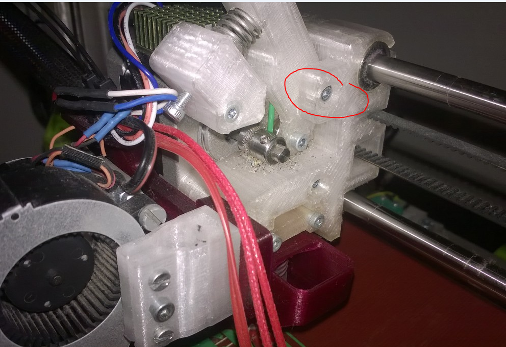 Zkontroluj si jestli se ti volně pohybuje páčka extruderu, před měsícem jsem jí já vůl maličko přitáhl když sem měnil HE. Pak sem řešil problém podobnej jako ty, vyměnil jsem kde co a furt problém stejnej, málem to už letělo z okna. Po povolení o půl otáčky vše ok.