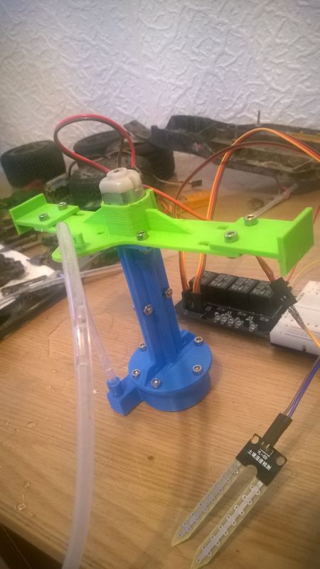 Další využití pro Arduino. Automatické zalívání. Senzor snímá vlhkost půdy, když je sucho zapne se čerpadýlko. Měl jsem to rozdělaný už nějakou dobu, ale teď jsou přednější jiný věci, takže je to zprovozněno. Plány byly poněkud jiné, ale aspoň tak :)