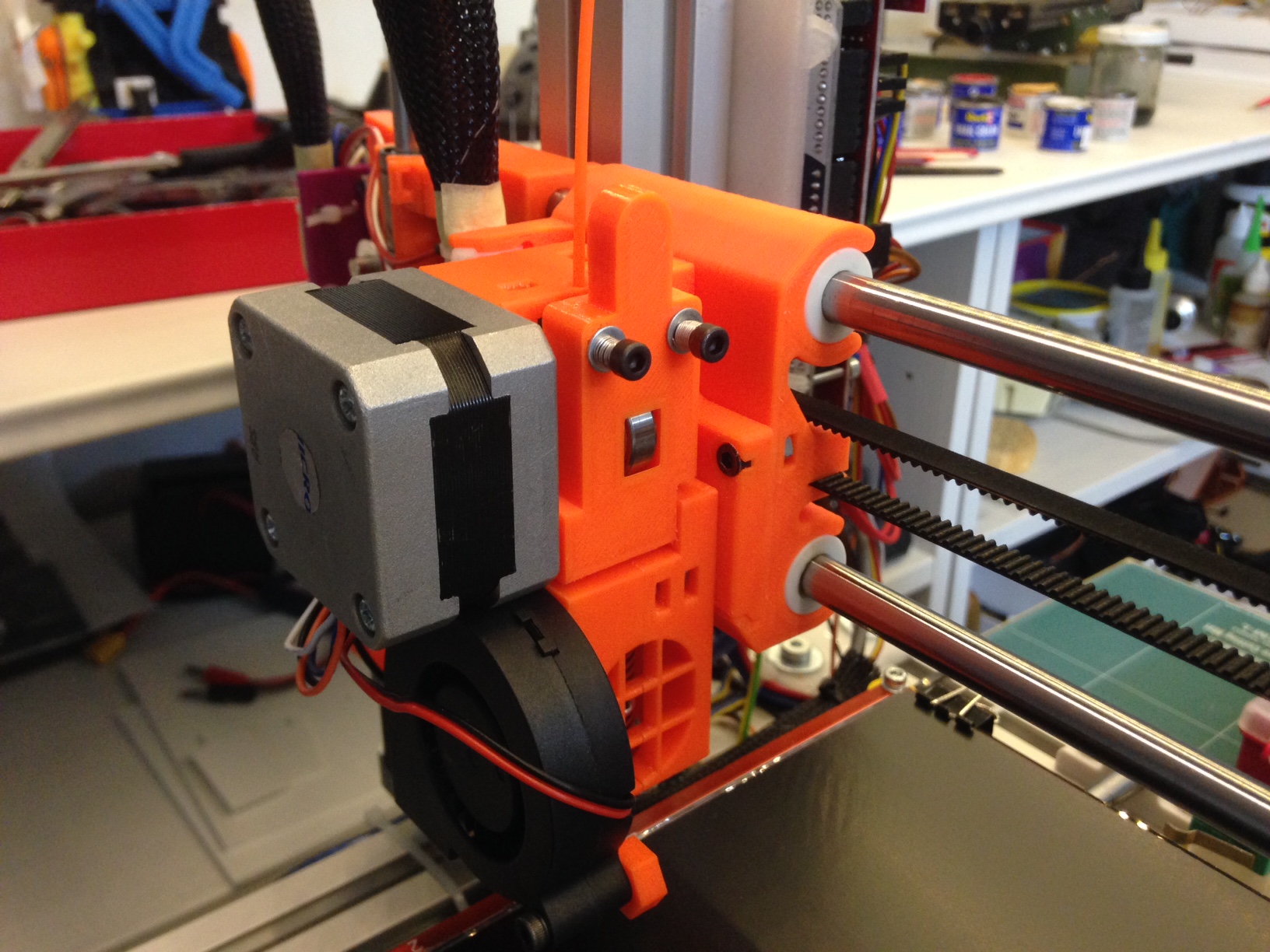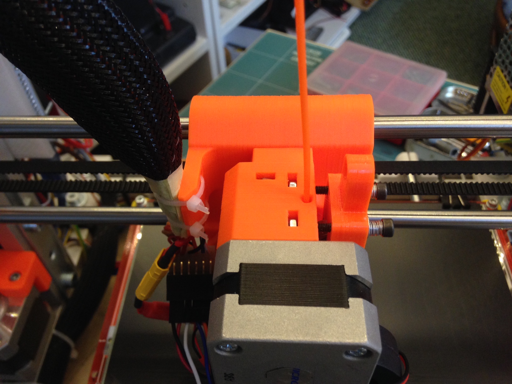 Mám to tak pro snadnější tisk. Ta trubička zasahuje až do důlku v chladiči HE, eliminuje se tím mezera a filament při zavádění nikde nezadrhne.