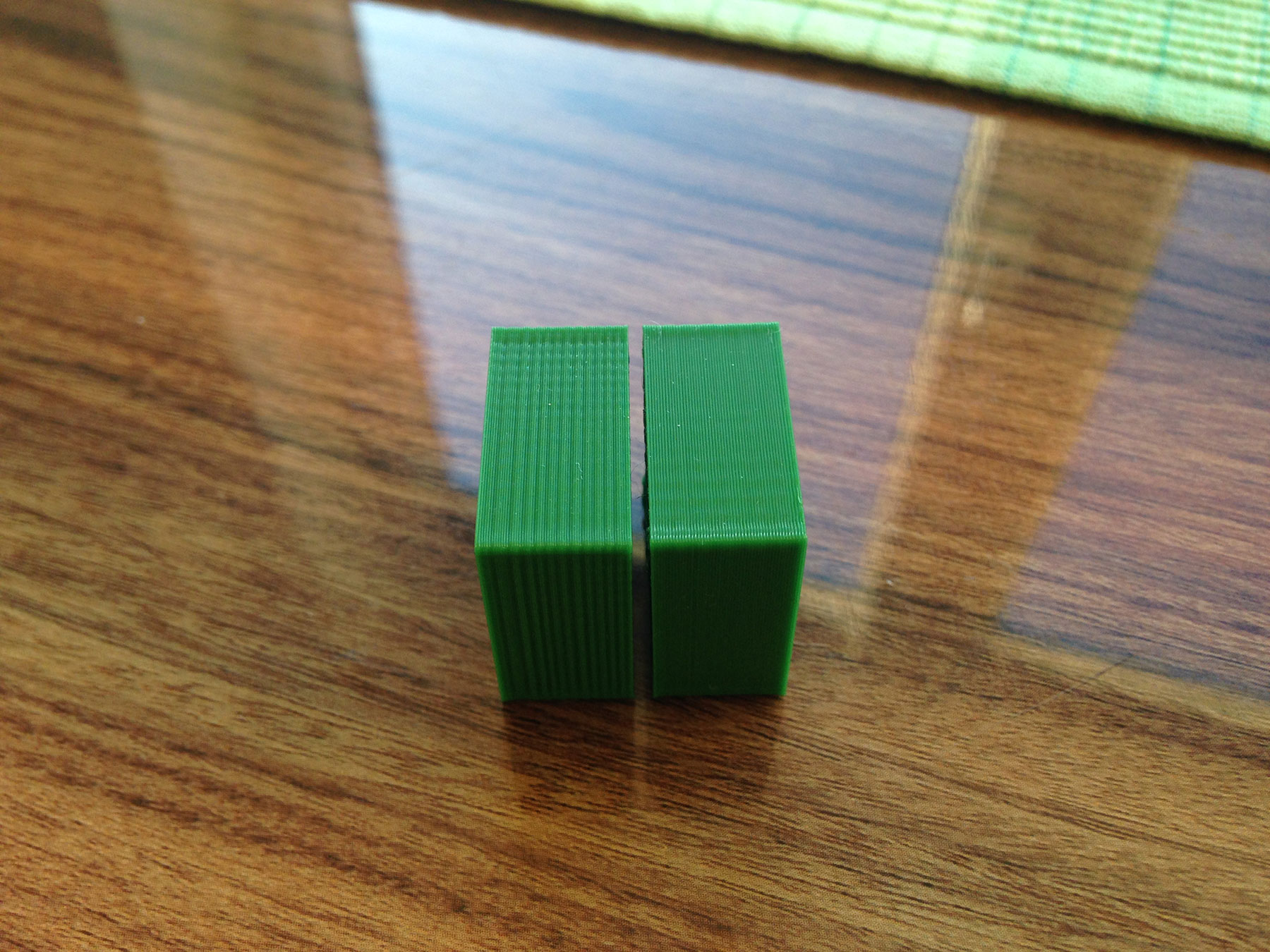 Vlevo PLA s ofukem, vpravo bez ofuku:
