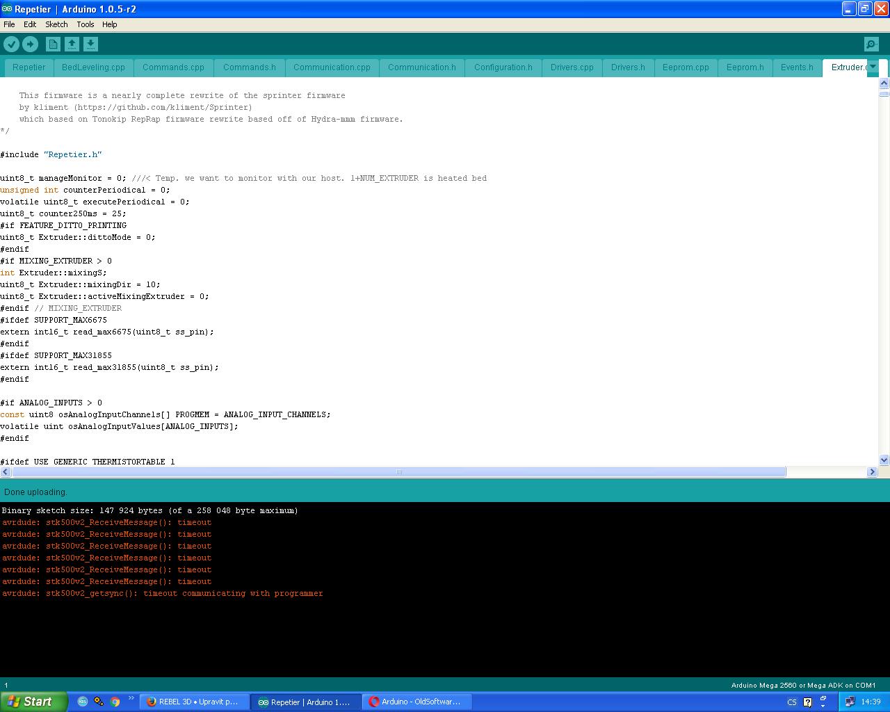 Nepíšeš ale to důležitější, jakou tiskárnu stavíš. Předpokládám, že to bude Rebel nebo jeho varianta. Pak je nejlepší zkusit stáhnout buď firmware Repetier ( viewtopic.php?f=38&t=1035 ) nebo Marlina ( viewtopic.php?f=38&t=1386 ), případně upravit parametry dle vlastních modifikací... Se zkomplikováním v Arduino-IDE by pak neměl být problém.