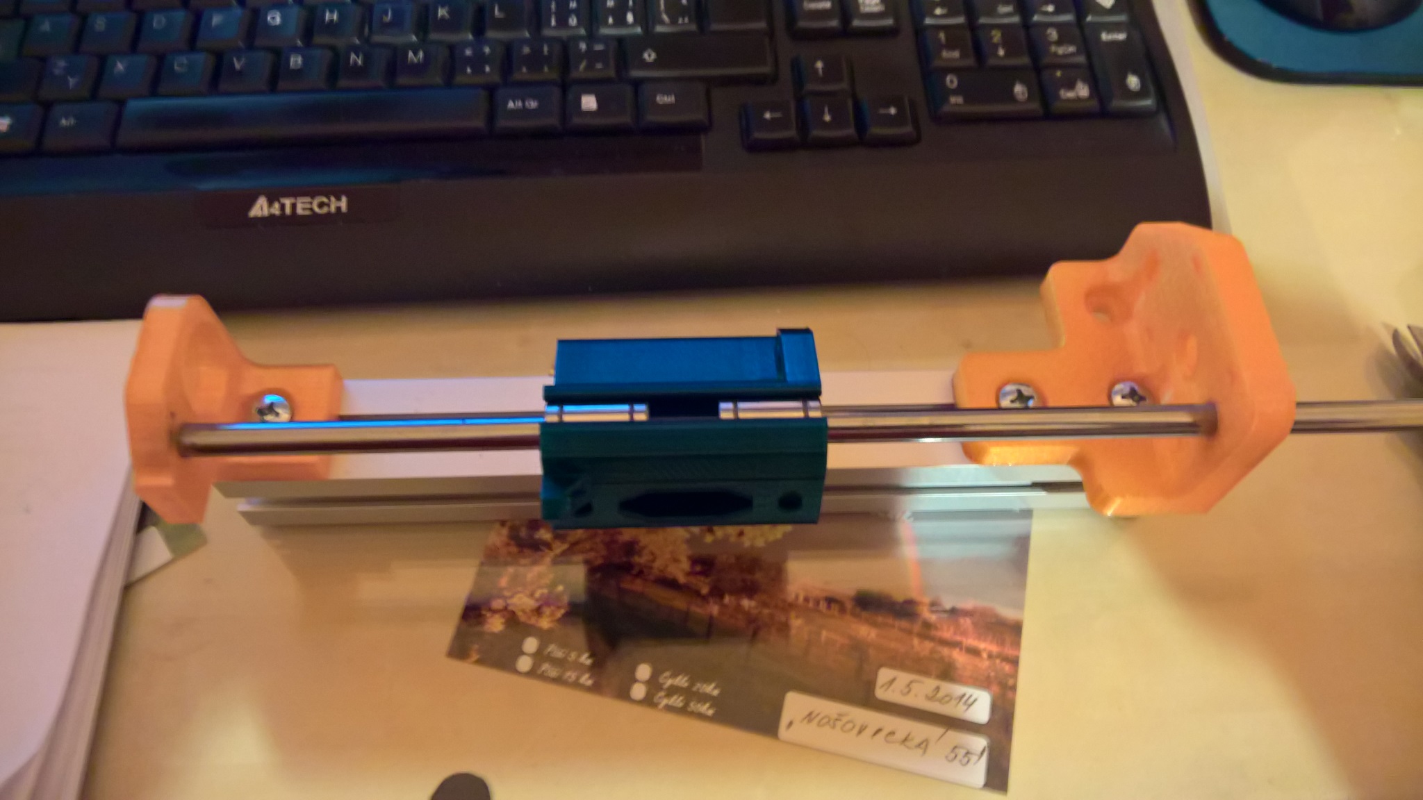 Tiskárnu mám v tuhle chvíli přestavěnou, čeká ji jen seřízení, každopádně díly od Luboshe sedí suprově, použil jsem verzi 8 mm, jelikož nemám doma 10mm ložiska ani tyče. Trapéz mám uložený v 608 ložiscích.