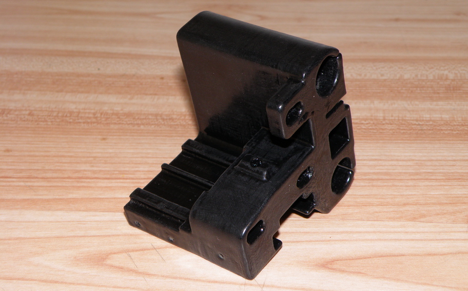 Ty hrany jsou vedlejší efekt. Tiskl jsem to ze zbytku černého ABS Filamentum a v několika místech se mi objevily praskliny. Proto jsem je vyplnil, zabrousil a abych díl zpevnil, natřel jsem ho acetonem. Jenže mi to po uschnutí hodilo takovou šedou patinu, tak jsem to smirkem obrousil a nechal 45 minut v acetonových výparech. Takže ty hrany vznikly částečně broušením a pak aceton