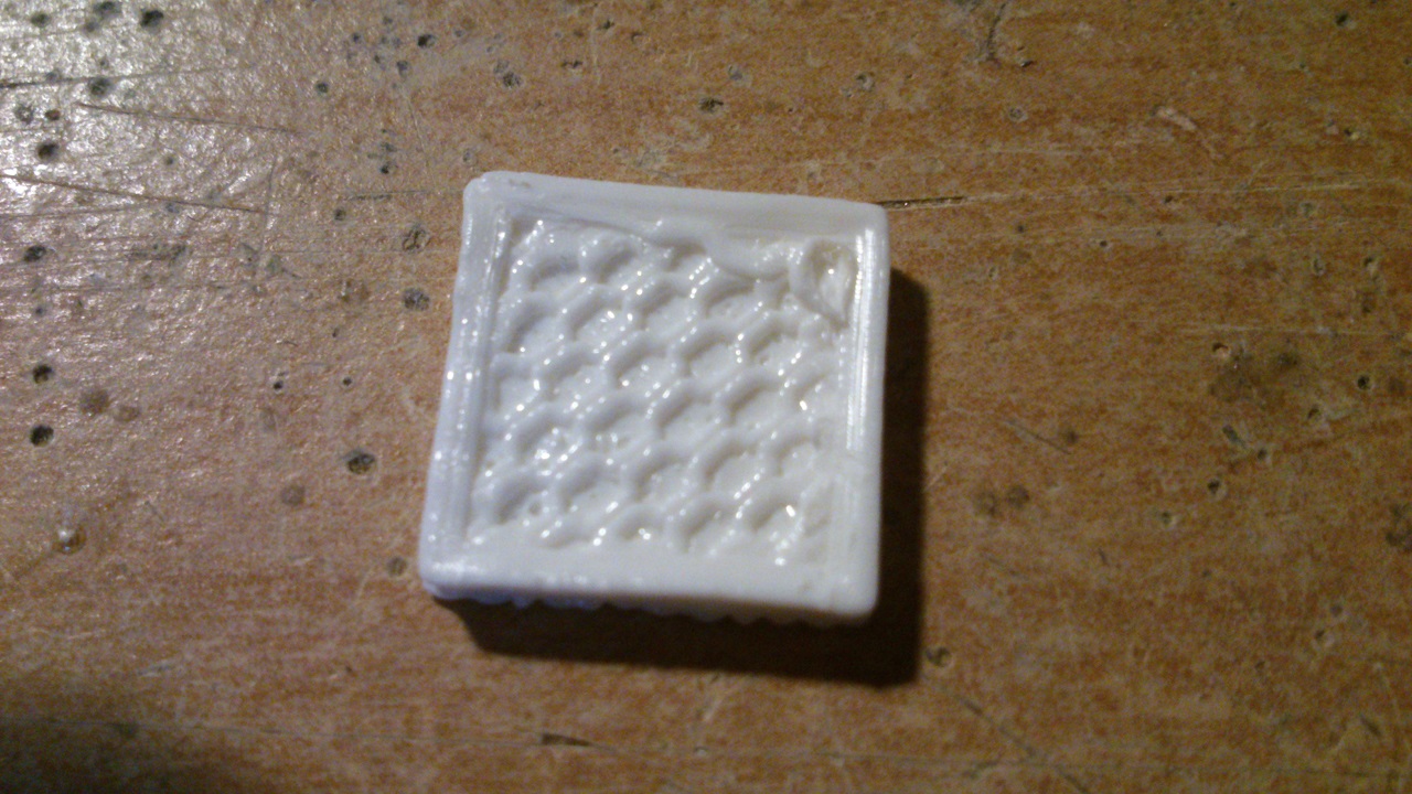 Tak konečně mi to v pohodě tiskne. První čtvereček dopadl nehezky, protože byl nízko endstop Z a tryska do toho doslova ryla (jde to dost dobře vidět, hlavně na té poslední vrstvě).