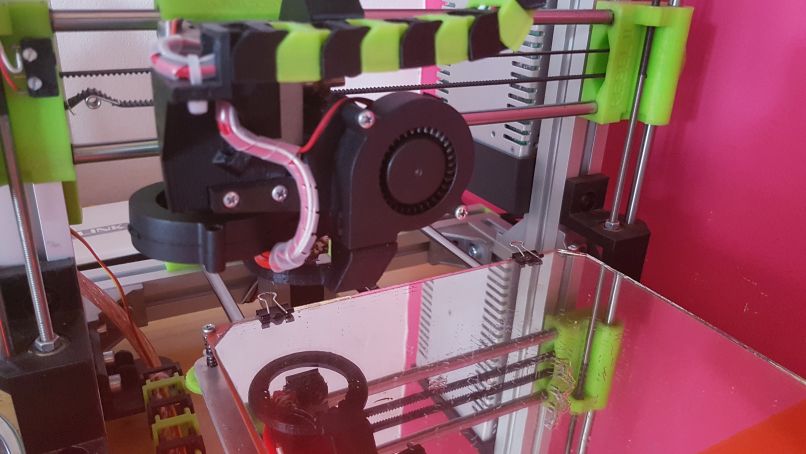 Trochu jsem si upravil ofuk hotendu RebelMOD z původního větráčku 30x30mm pro radiální ventilátor. Zespoda na větrák se dá krásně přilepit LED světlo palaralně připojené k větráku (fouká svítí / nefouká nesvítí) :-)