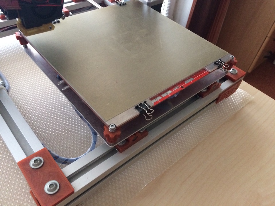 Na zlepšení mě napadají jen tyhle sponky z Ultimakera, které zabírají trošku méně místa a mají menší profil