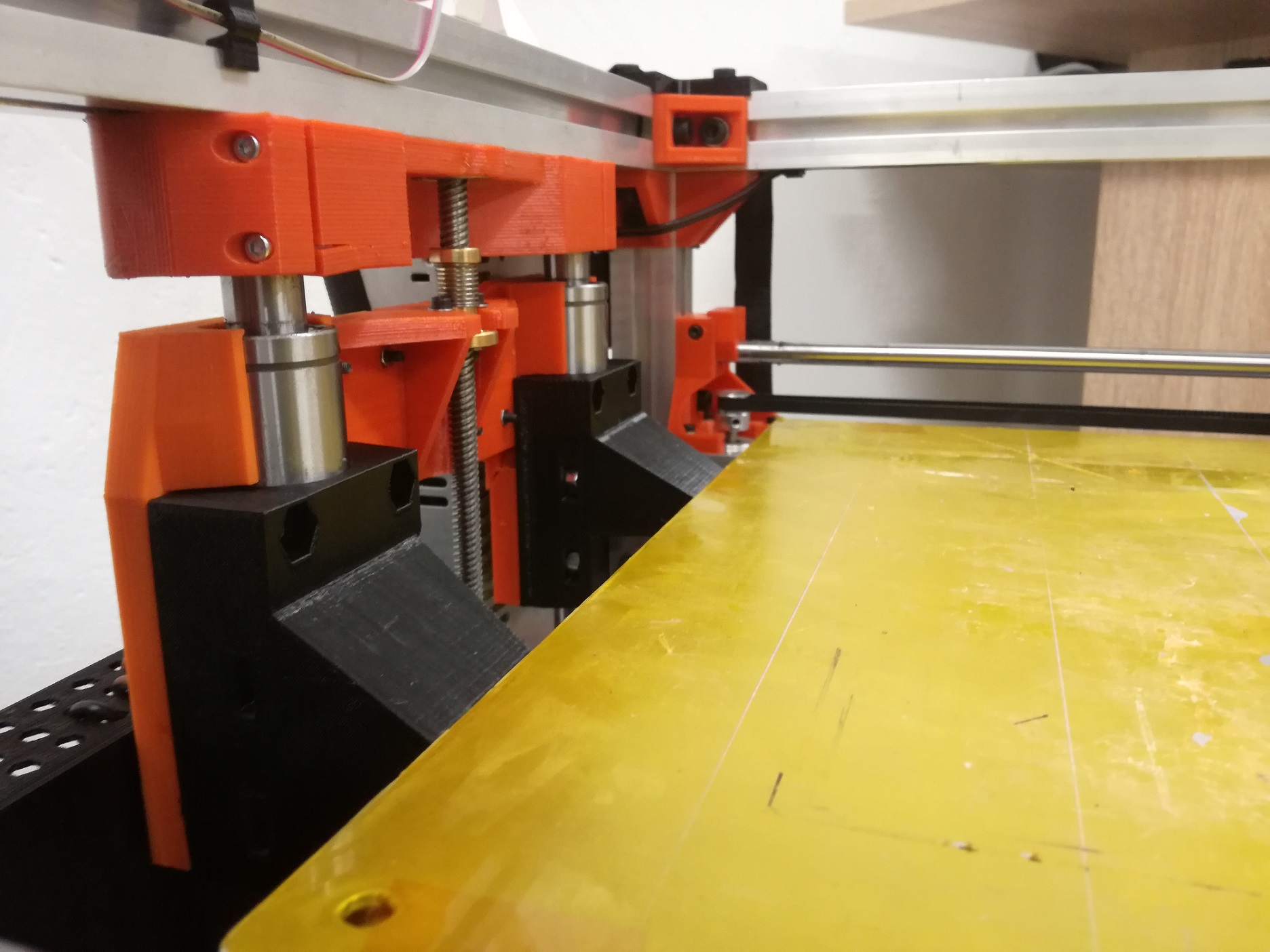 Tak mé iluze o stabilitě 12mm kalených tyčí na ose Z ukázaly to, že stůl docela vibroval.