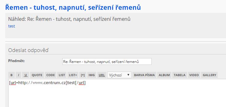 @Otomar: Děkuji, já zadával url v uvozovkách, a to nefungovalo ( [url="http://adresa.xy"]text[/url] ).