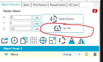 Ve Slic3ru žádný problém... Pravé myšítko a otočit podle požadované osy ...