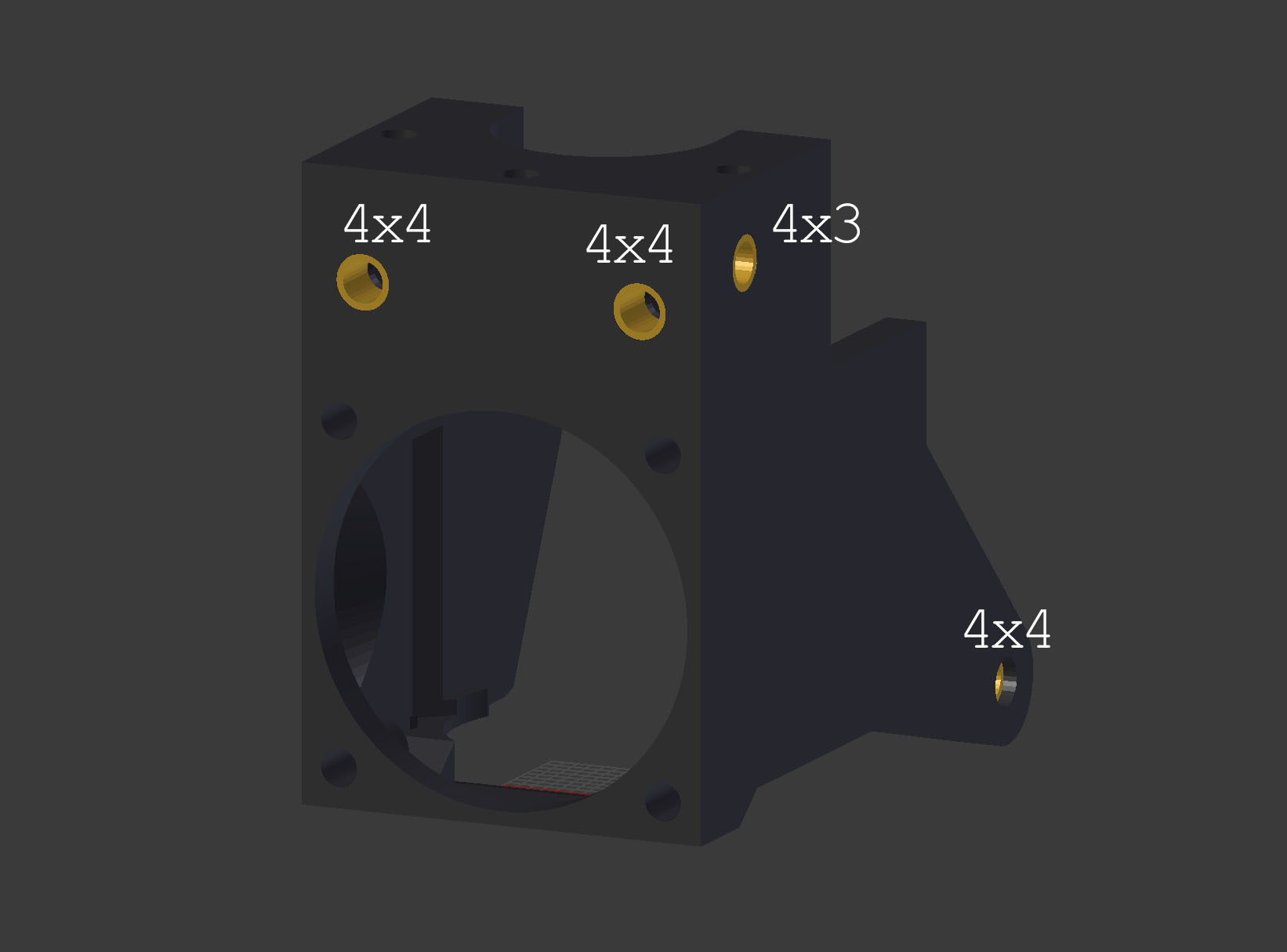Tisknu ho z PETky na 240°C vrstvou 0,15 mm. Jsou potřeba 4 matičky M3 do plastu rozměr 4x4 a jedna 4x3.