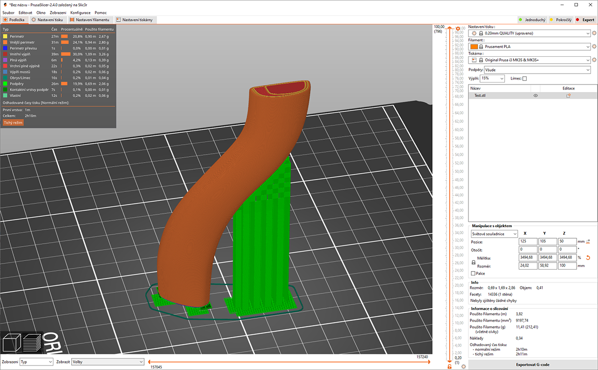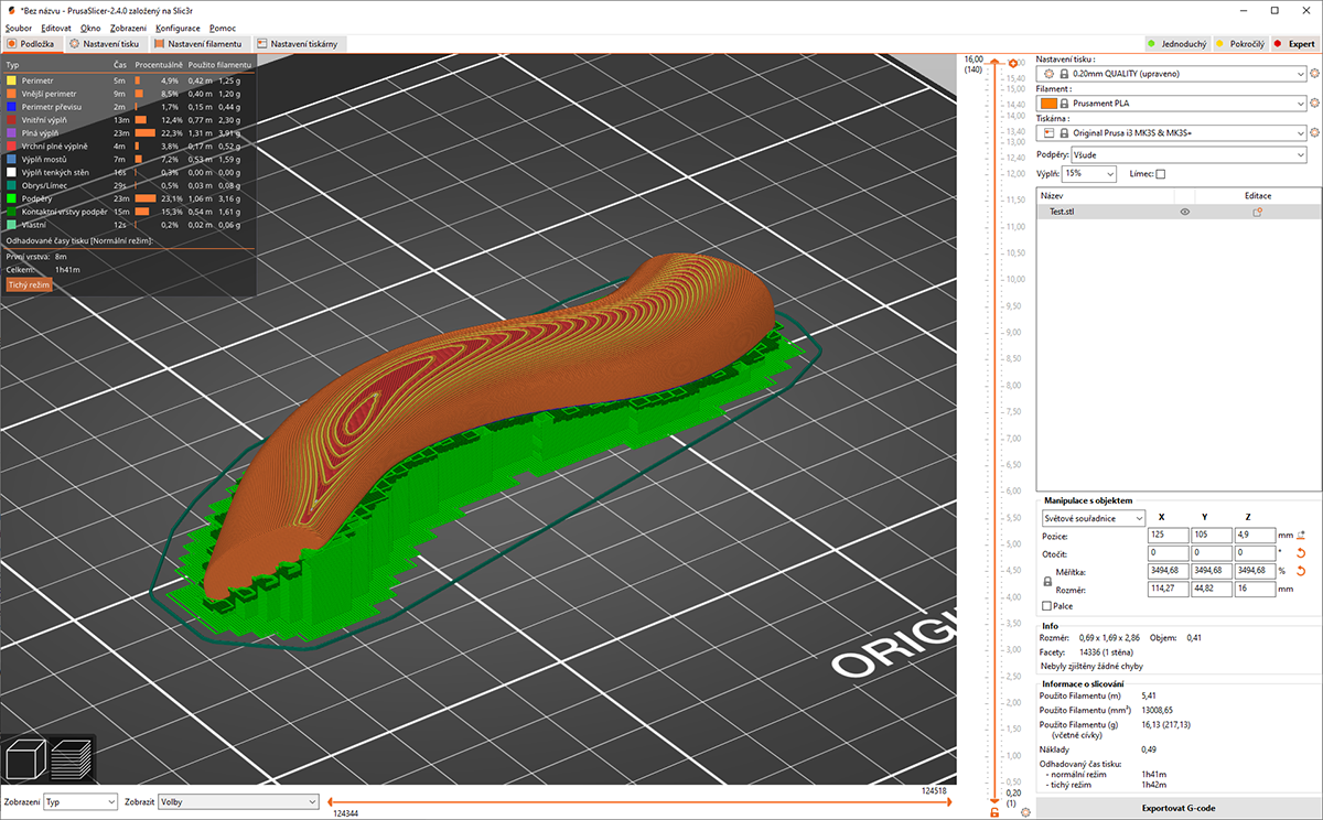 V rychlosti jsem od oka vymodeloval podobný tvar a hodil do sliceru. Ať se to umístí jak chce vždy je tam místo, kde to po vrstvách praskne...