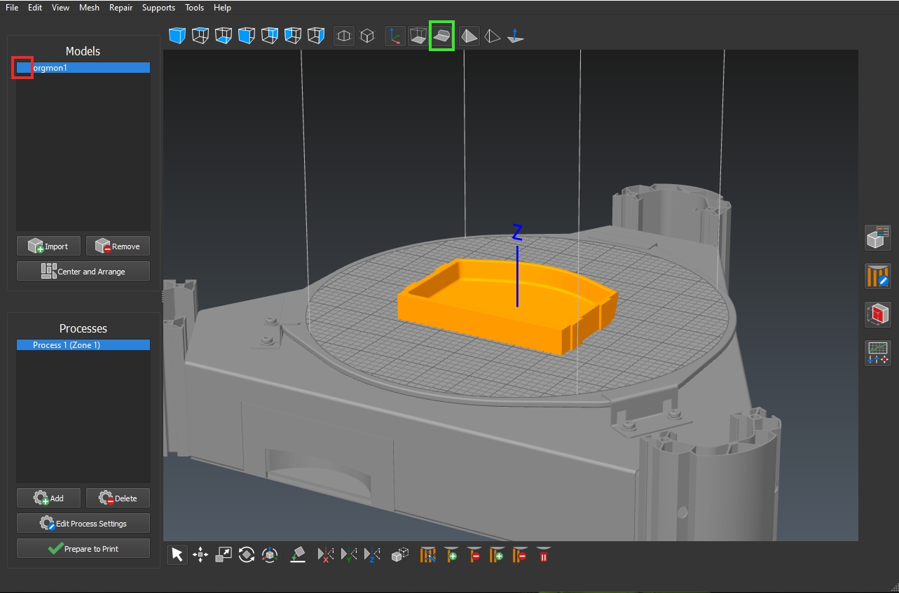 Můžeme též přidat stl model a označit ho aby se tiskl jako podpora (klik pravou myší na model v náhledu>Change model type>Custom support structure.)