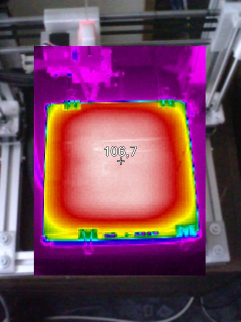tiskárnu jsem postavil teď na konci roku, takže začínám. Teplotu nedostanu víc než 106°C. Napětí na heatbedu je při nahřívání 11,6V, na svorkách zdroje 12,1V. Odpor jsem zatím neměřil. Při kontrole termokamerou žádný problém na svorkách nebo kabelech nezjištěn..... :(