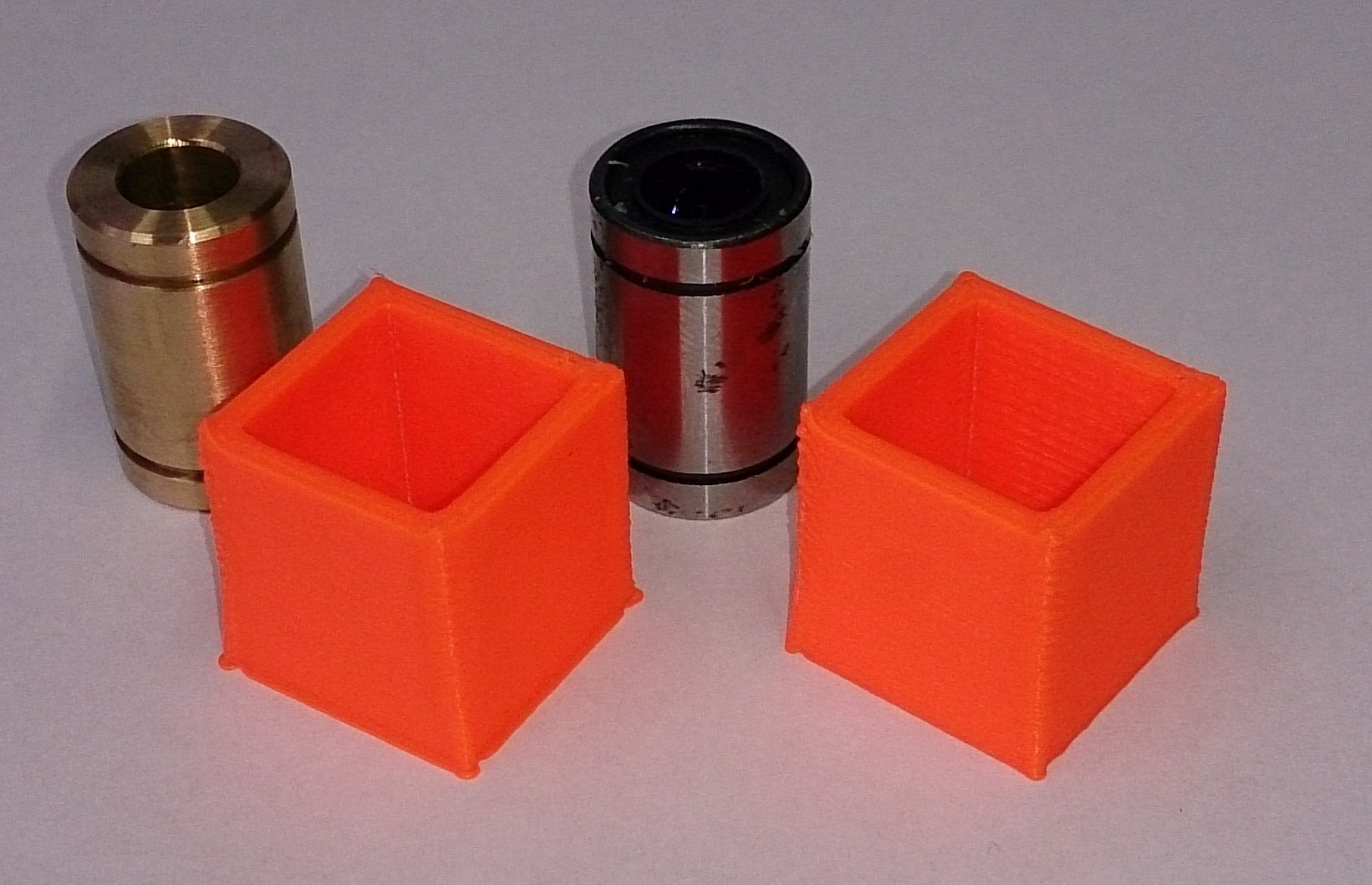 V ramci vyvoje v JRC jsem experimentoval s kluznymi lozisky z bronzu a fosforoveho bronzu. Nechal jsem vyrobit kluzna loziska rozmerove stejna jako LM8UU. Problem je, ze nejdou pouzit na jednu tyc dve - diky nepresnostem se dokazou zaprit tak, ze to motor neutahne. Nic neodpusti.