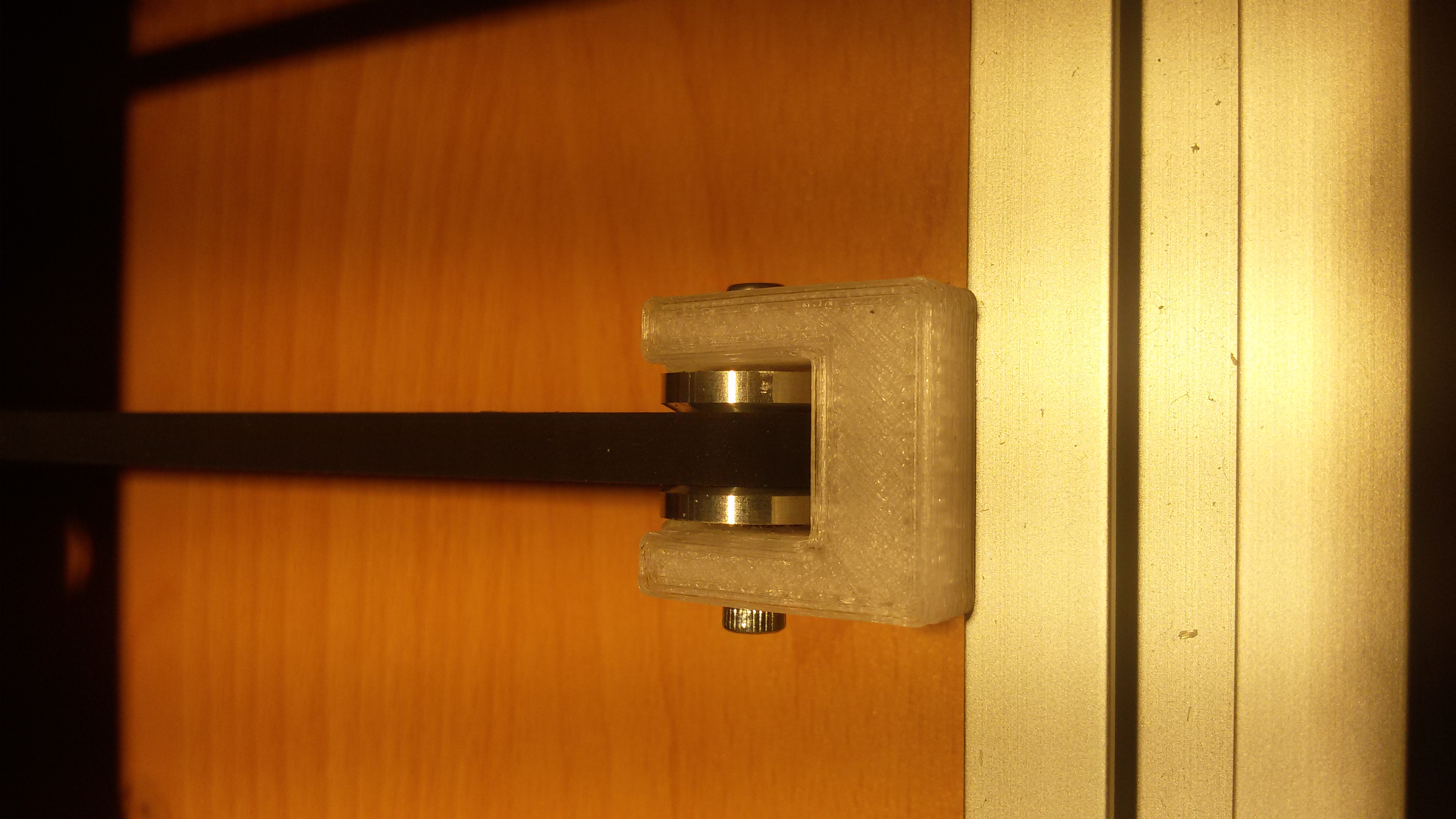 Popravdě řemen přímo na ložisku byl už na prvním mendelu a nenapadlo by mně tam cpát ještě něco dalšího. Klasicky používám na všech kladičkách kombinace imbus m4 se samojistnou matici podložkou na konci a mezi tím velkou podložku, malou podložku, dvě 624 ložiska, malou podložku a velkou podložku. Ty velké "karosářské" slouží jako okraje a ty male zajišťují dotyk jen s vnitřním kroužkem ložiska.