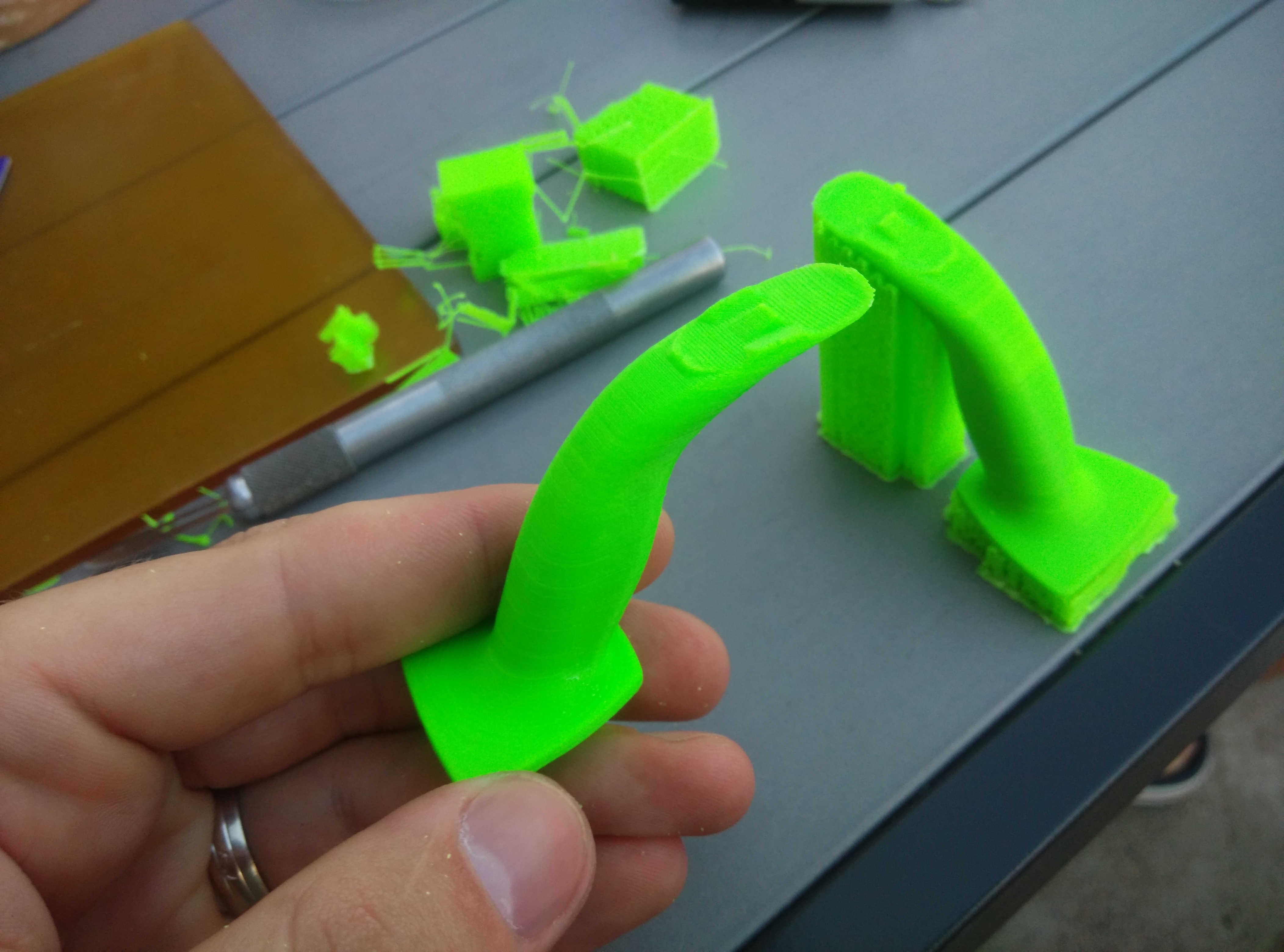 Včera som viacej testol Craftware. Tlačil som Joysticky do RC modelu s automatickými podporami. Velkosť cca 65 mm na výšku. Prvá verzia nedopadla dobre. Dal som strašne na husto podpory čo by až tak nevadilo ale brutál rýchlosť... Neuvedomil som si že draw rýchlosť bude platiť aj pre podpory a lietala tlačiareň ako zbesilá, čo by moc na kvalite tlače nedodalo....