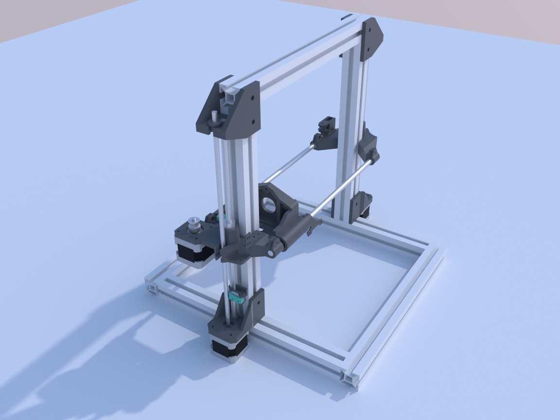 Jak je z obr vidět, nepoužil jsem pro osu Z řemeny, ale závitovky. Někomu se to možná nebude líbit ale podle mého je to jednoduší řešení. Použil jsem taky pouze jednu tyč na každé straně pro vedení (snad nebudou moc veliké deformace, neměli by). Ještě dodělám držáky Z motorů (opět budou dva), horní uložení závitovky a tyče a umístění spínačů osy Z a X.