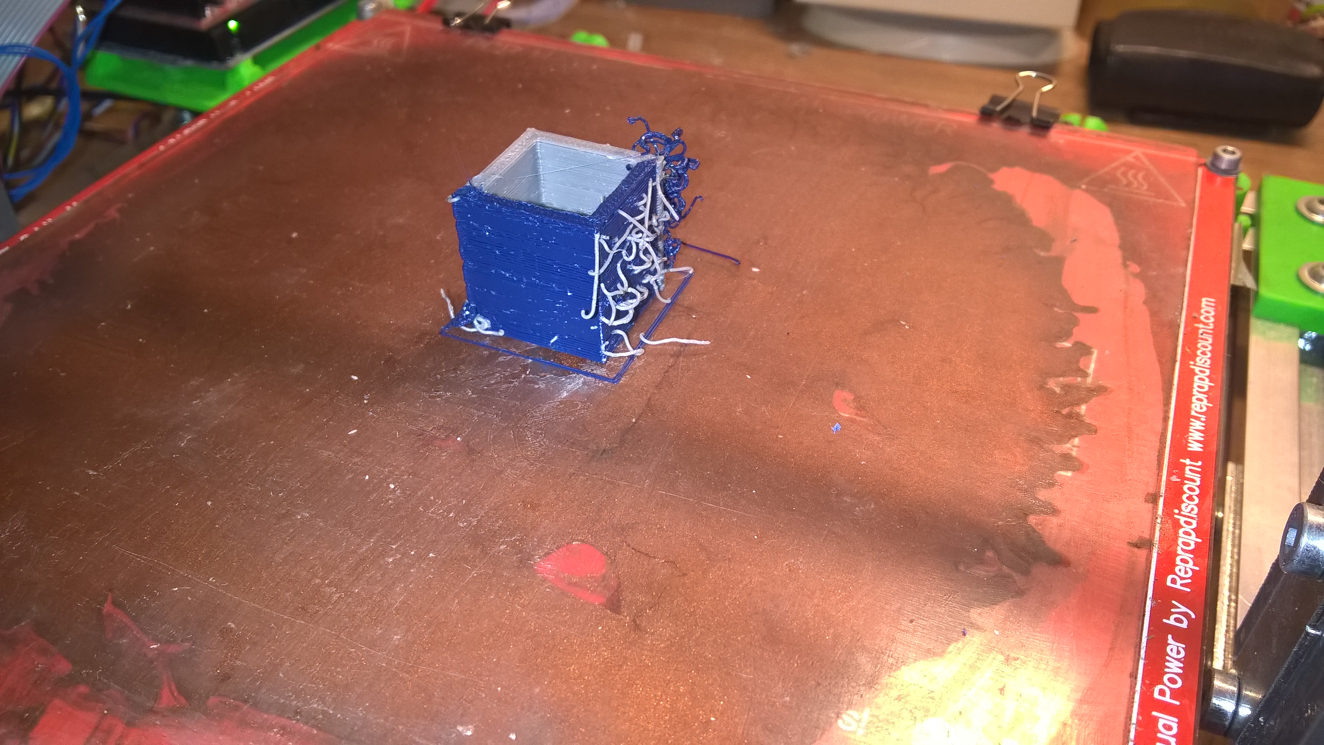 Takže druhý tisk už s namontovanými ucpávkami a po úpravě, kterou jsem zapomněl udělat i na trysce s modrým plastem, takže ten ještě vynechával, se podle mého podařil. Zde jsou obrázky výtisku a video (to poslední video).