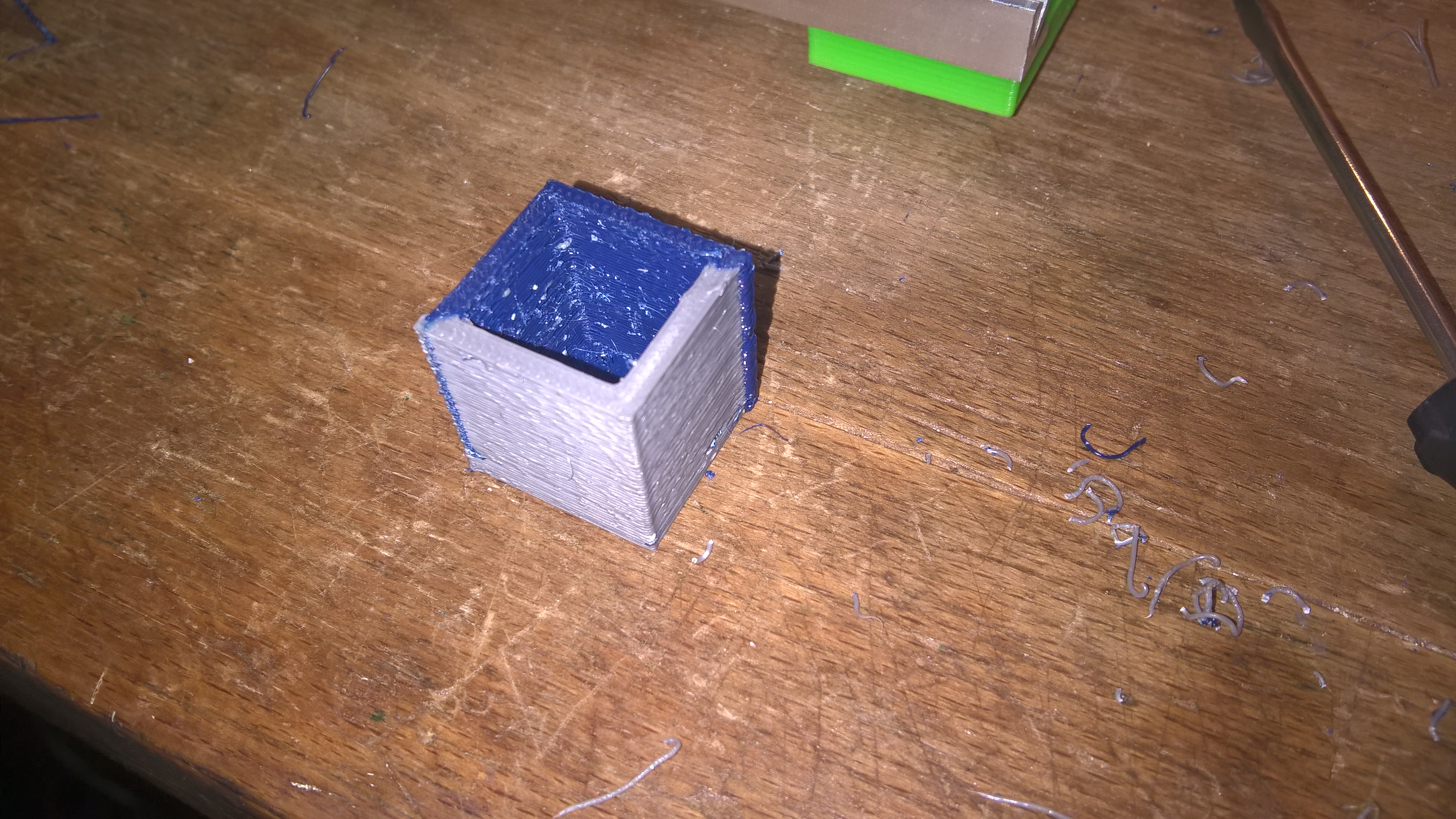 Takže jsem provedl první zkušební tisk s hrubím nastavením a bez ucpávek trysek, dopadlo to takto